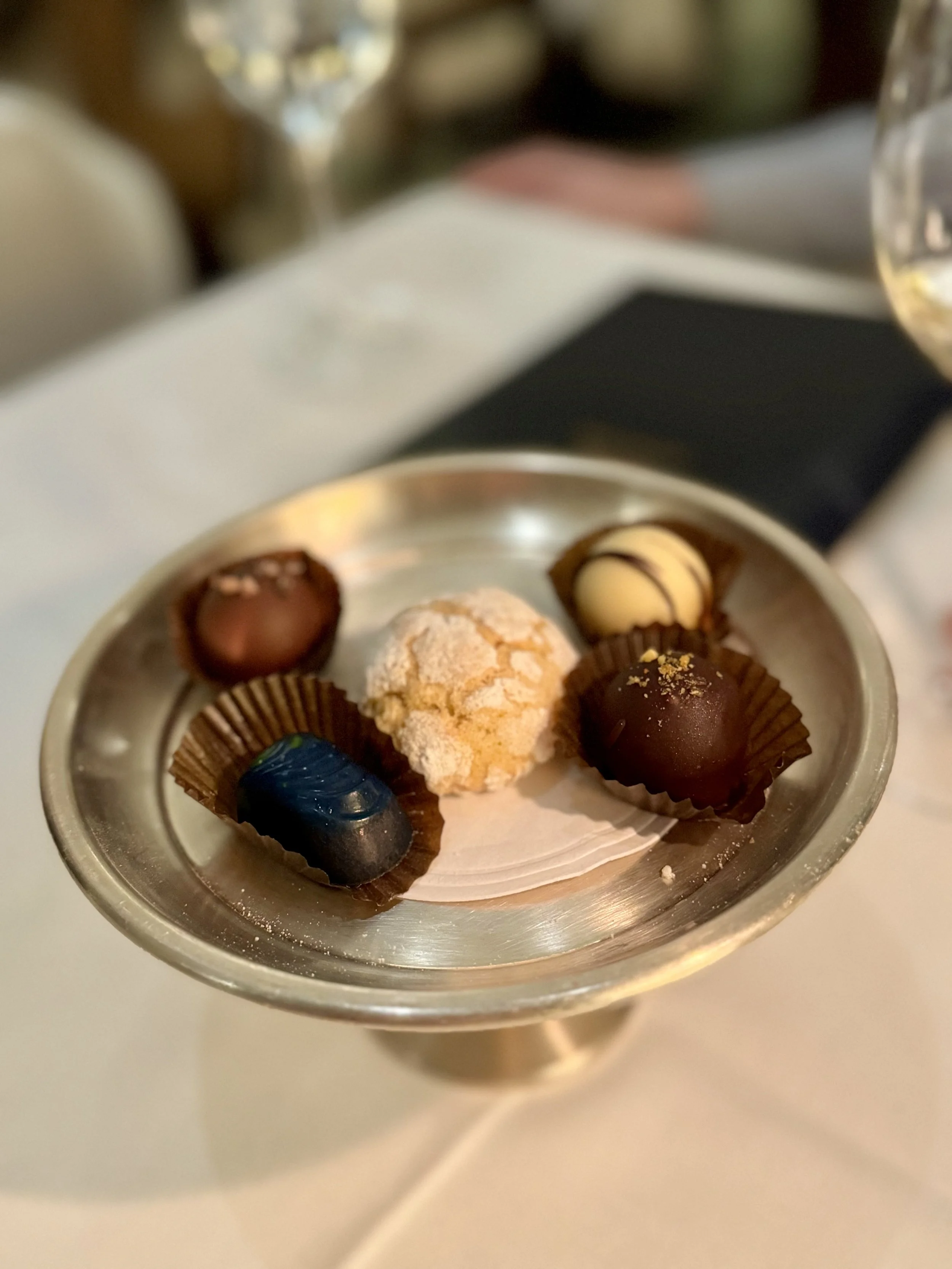 We couldn’t be more stuffed at this point, so we passed on dessert. I felt like I was complete after that apple strudel two days ago. The waitress brought over some petits fours to conclude our dinner.