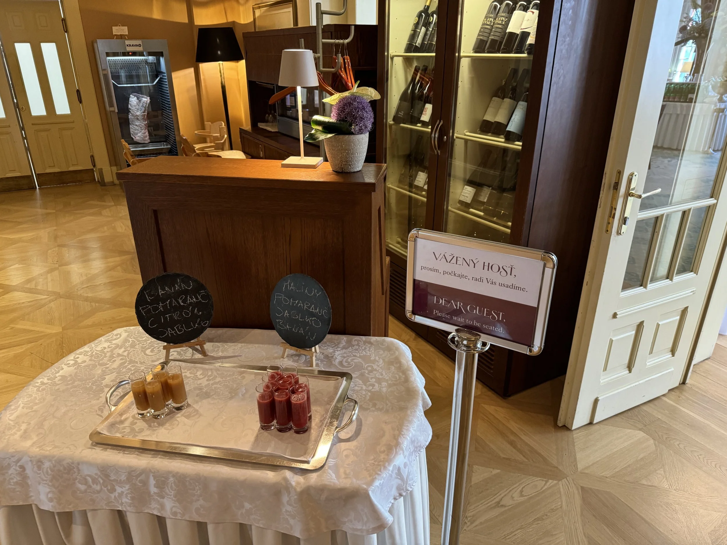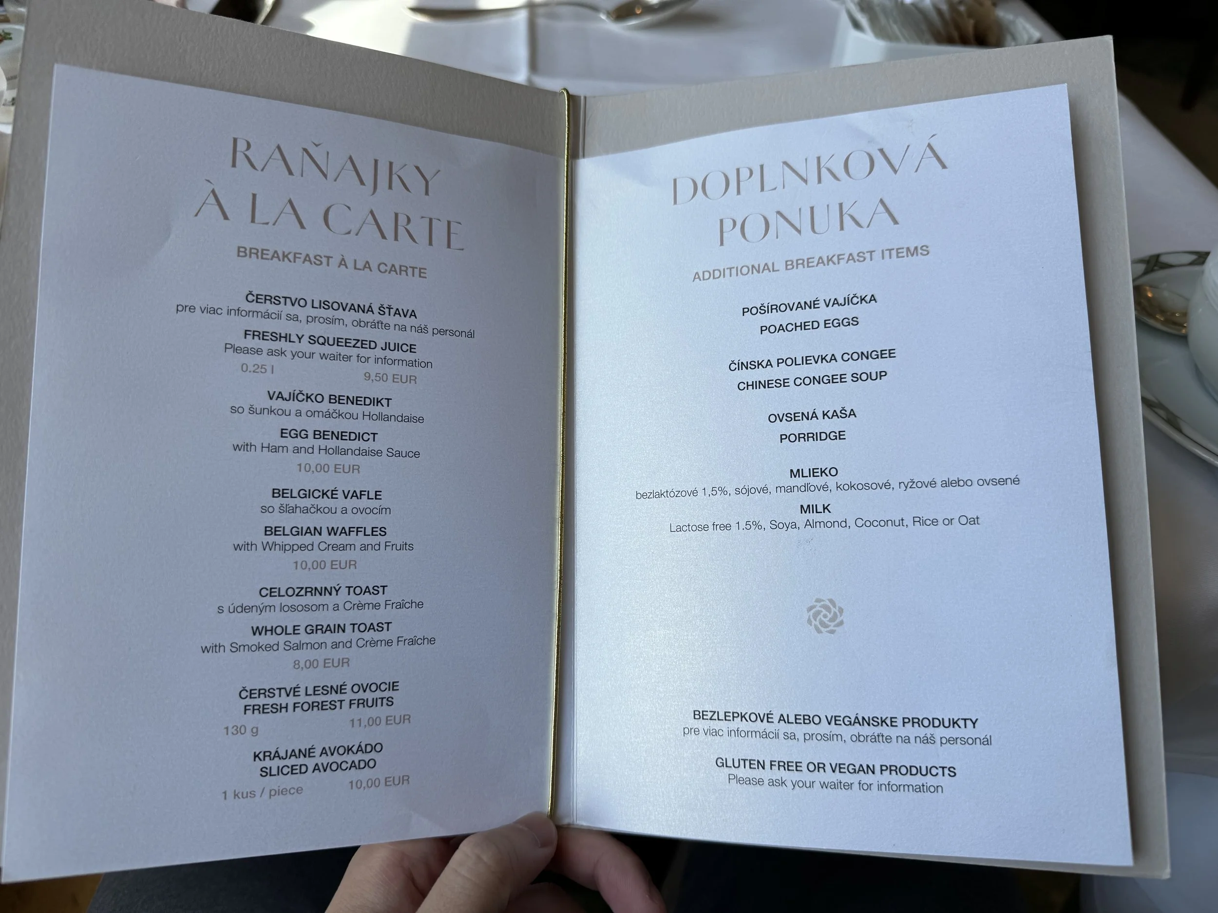 We had a leisurely drive to the Kempinski from Vienna, with an intermediate stop in Bratislava. The drive was worth it in and of itself - winding through villages and national parks dotted in the Slovakian countryside. We made it to the hotel just shortly before 7pm.