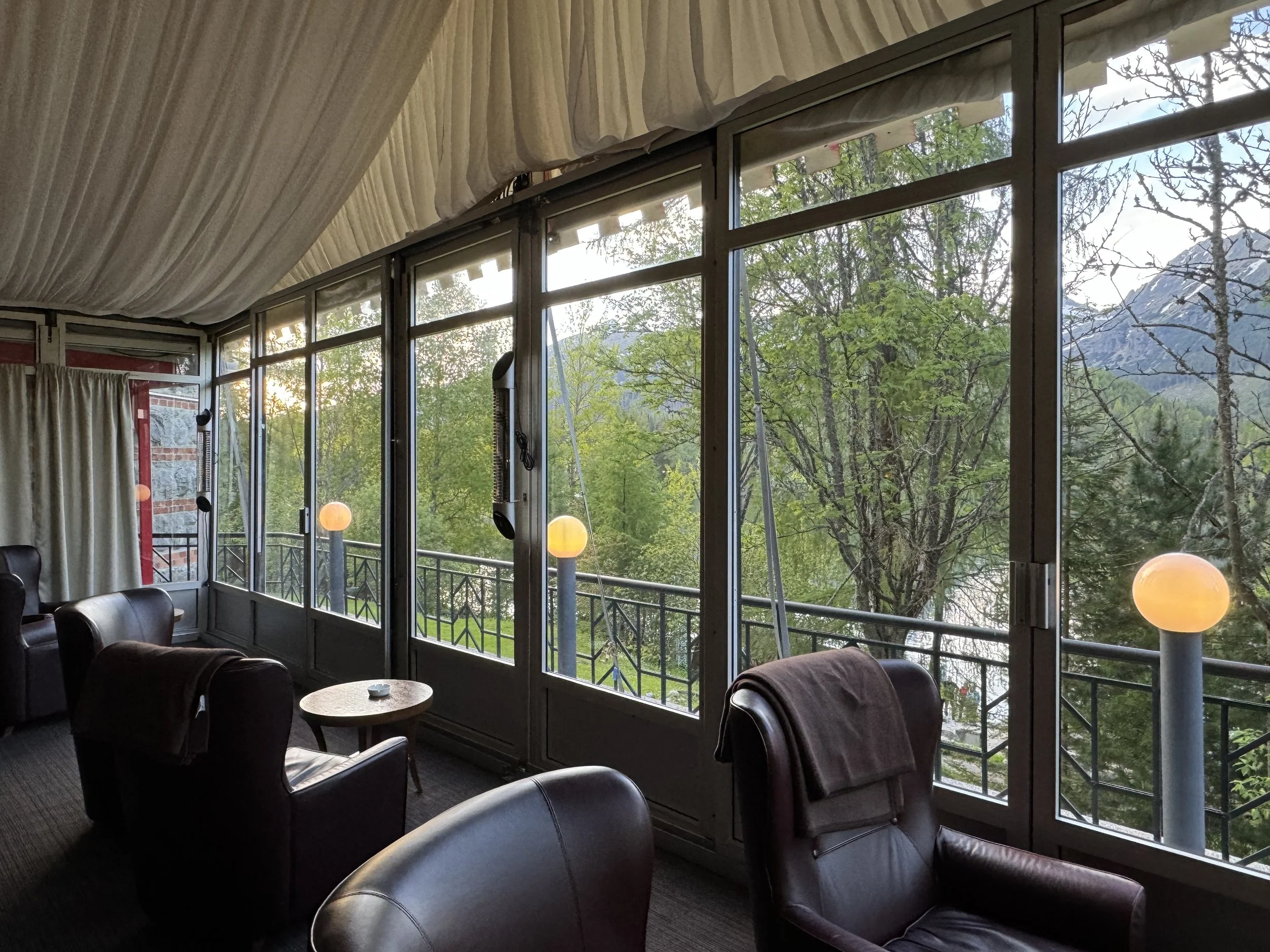 Attached to the lobby bar was a smoking lounge that overlooked the lake.