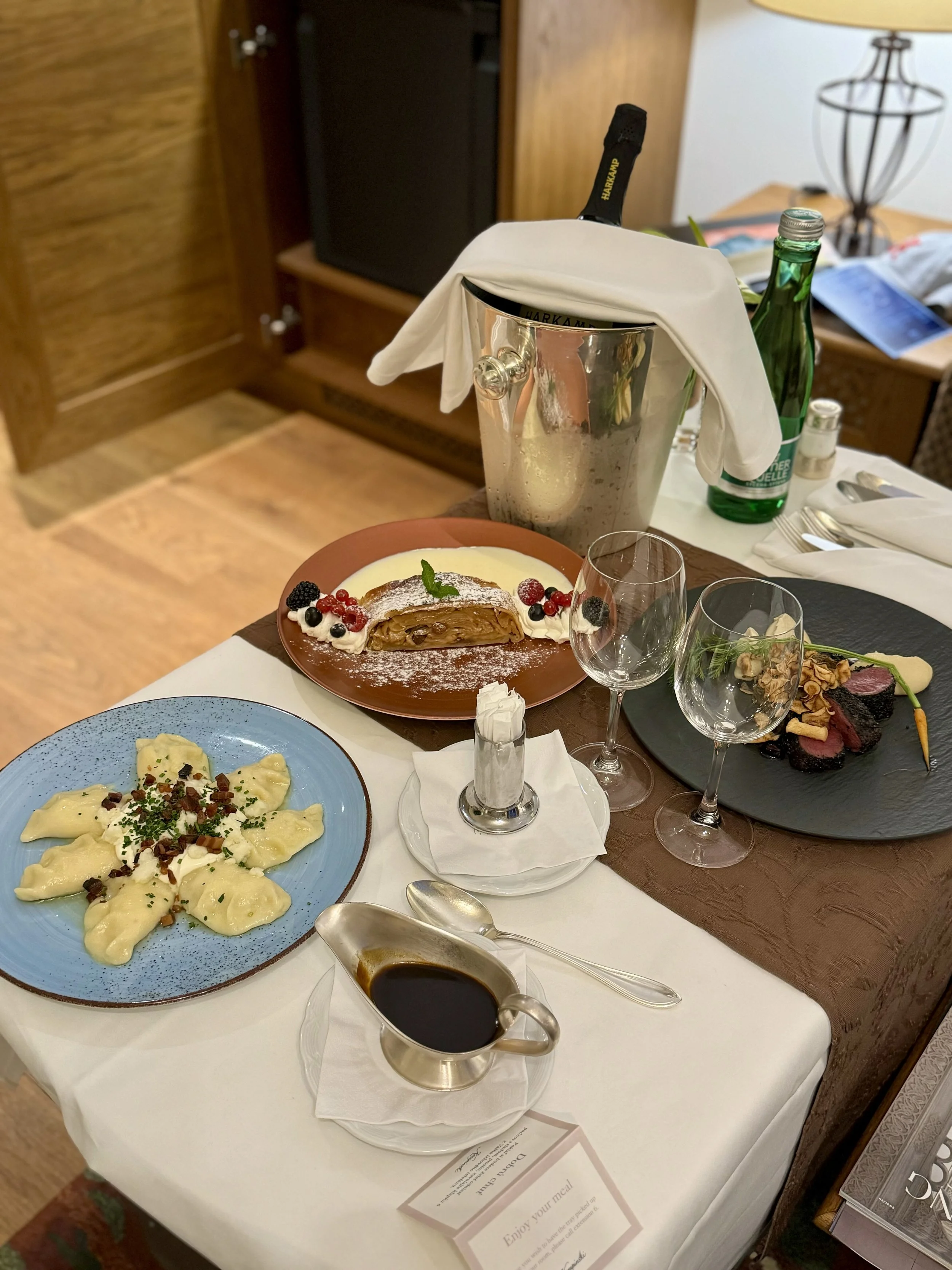 We had room service on our first night. We shared the pierogis, the mouflon loin and one of the best apple strudels I’ve ever had. The mouflon loin wasn’t on the room service menu, but the hotel was happy to oblige.