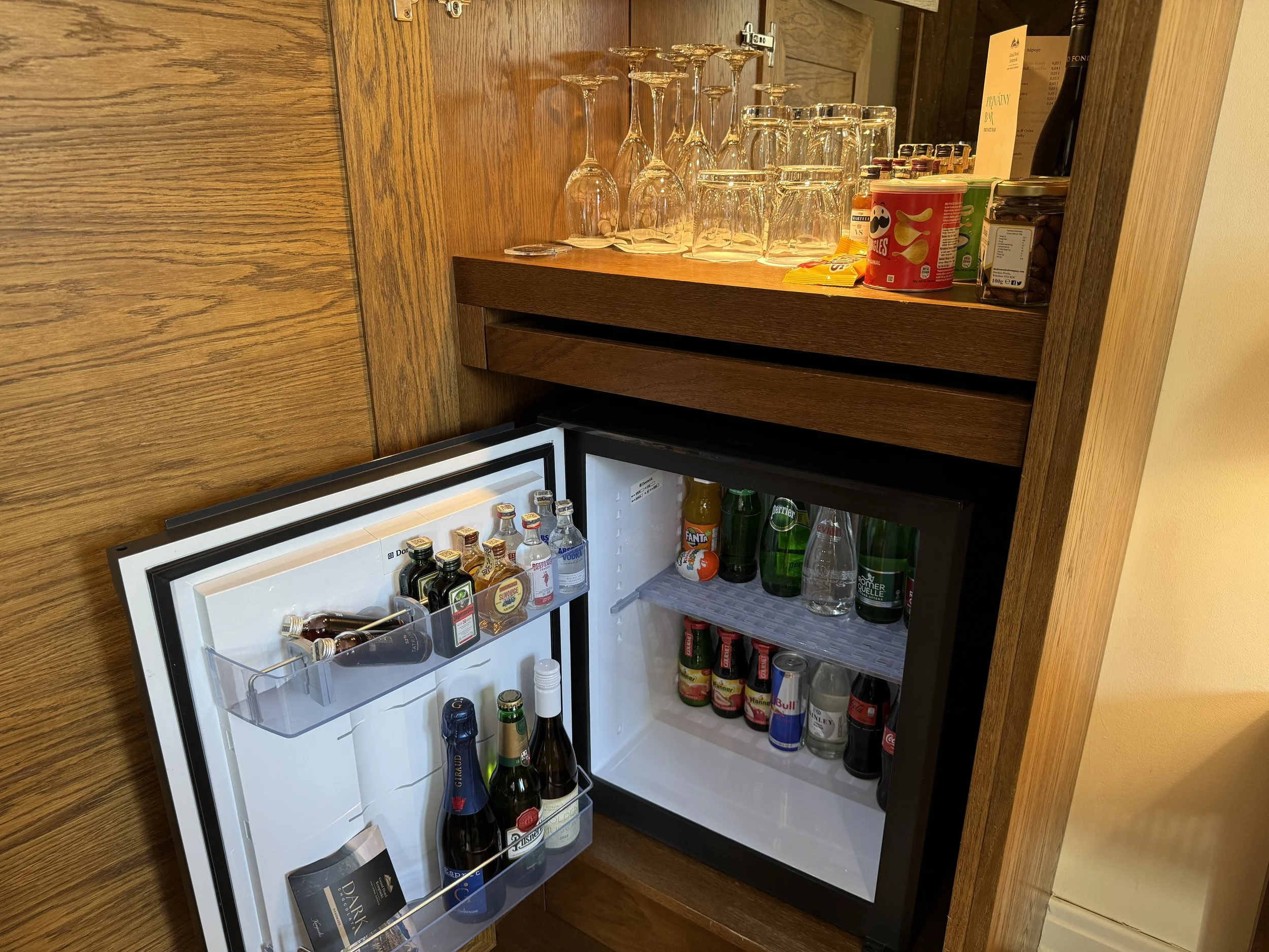 Behind the door was a sizable closet with a safe, along with a well-stocked minibar.