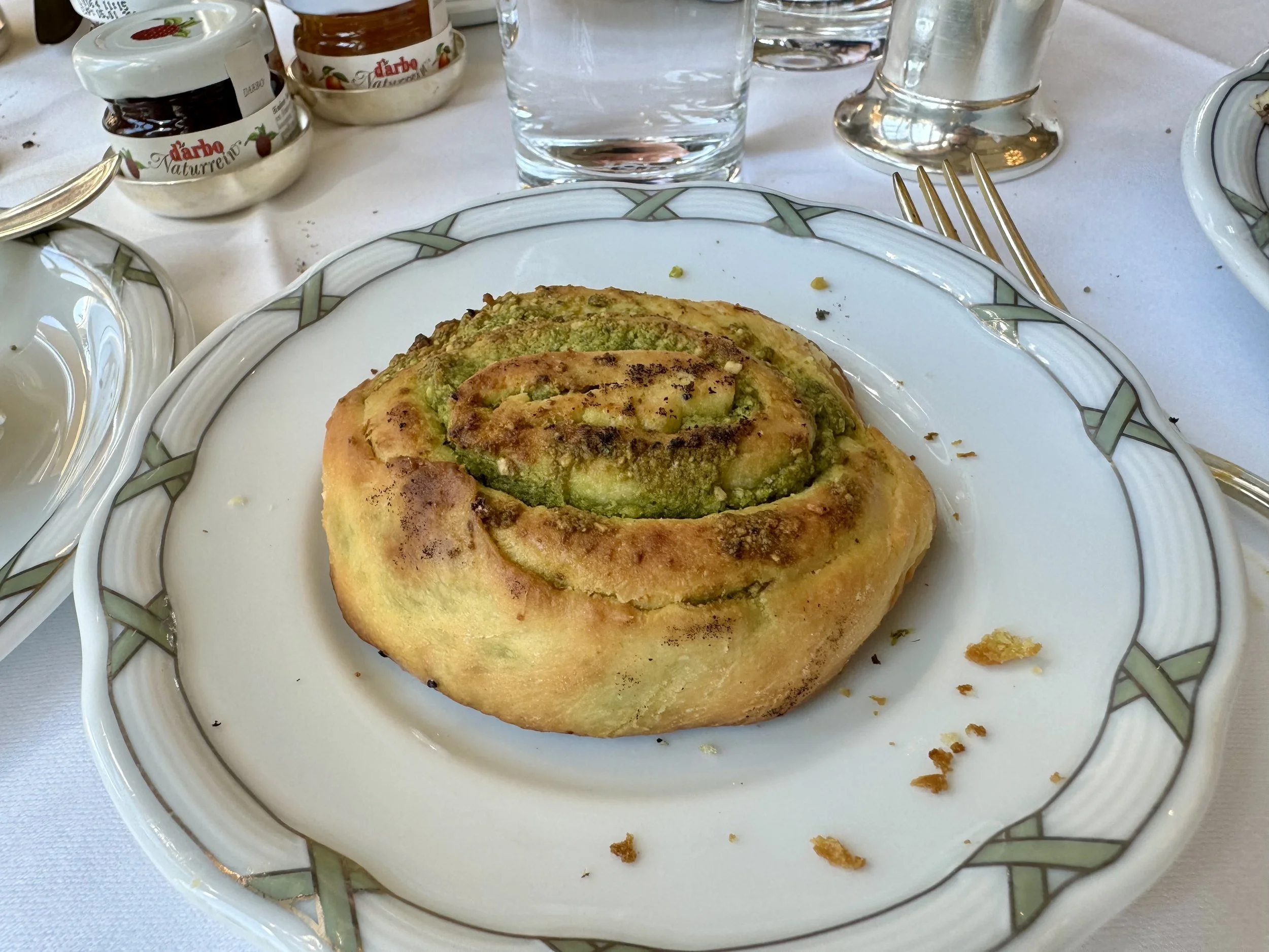 The coffee was stellar, as was the pistachio pastry. Eggs could be ordered to your liking, and breakfast sparkling was self-serve.