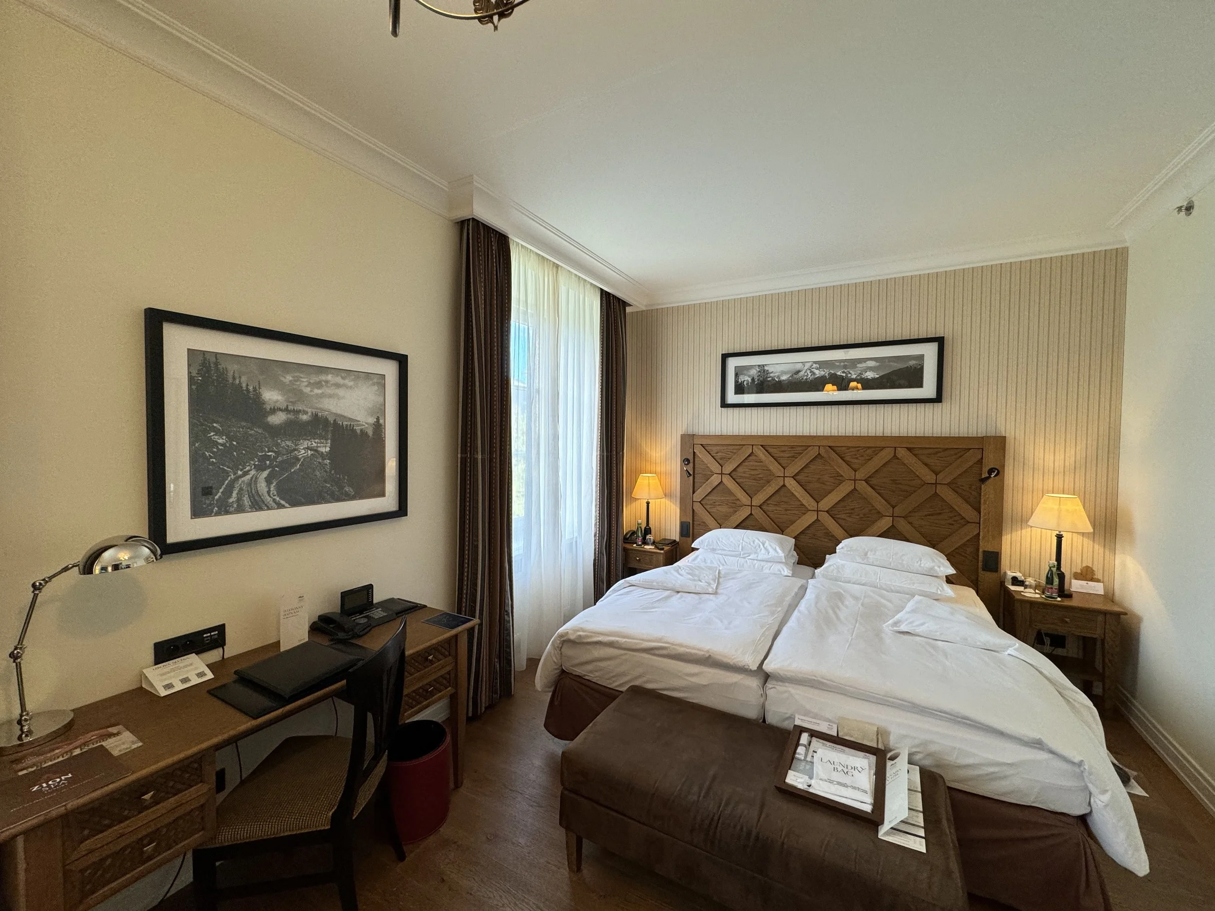 Our stay at the Kempinski was ineffable. Nonetheless, I’m going to contradict myself and write another 100 words. I adore a hotel with characters and history, or as the kids call it, a vibe. The architecture itself was once a health clinic for patients with lung diseases back in the 50s, since the air in this area was so crisp and fresh and was believed to be therapeutic. The Kempinski took over and converted it into a hotel in 2009. The property featured 98 accommodations, and each room was allegedly different.