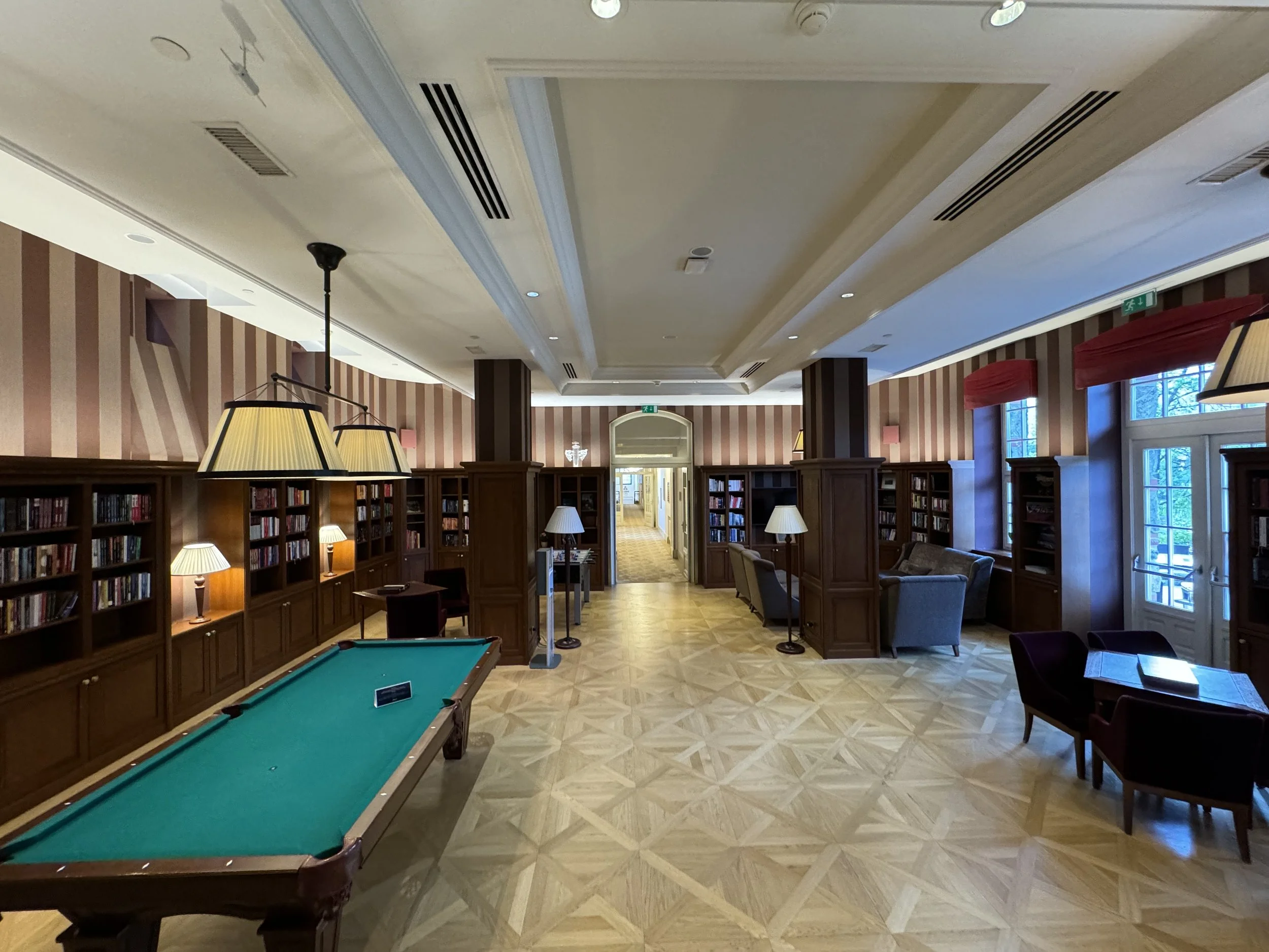 On the sub-cellar floor, along the corridor leading to the spa was the Players’ Lounge, with books, games and a pool table.