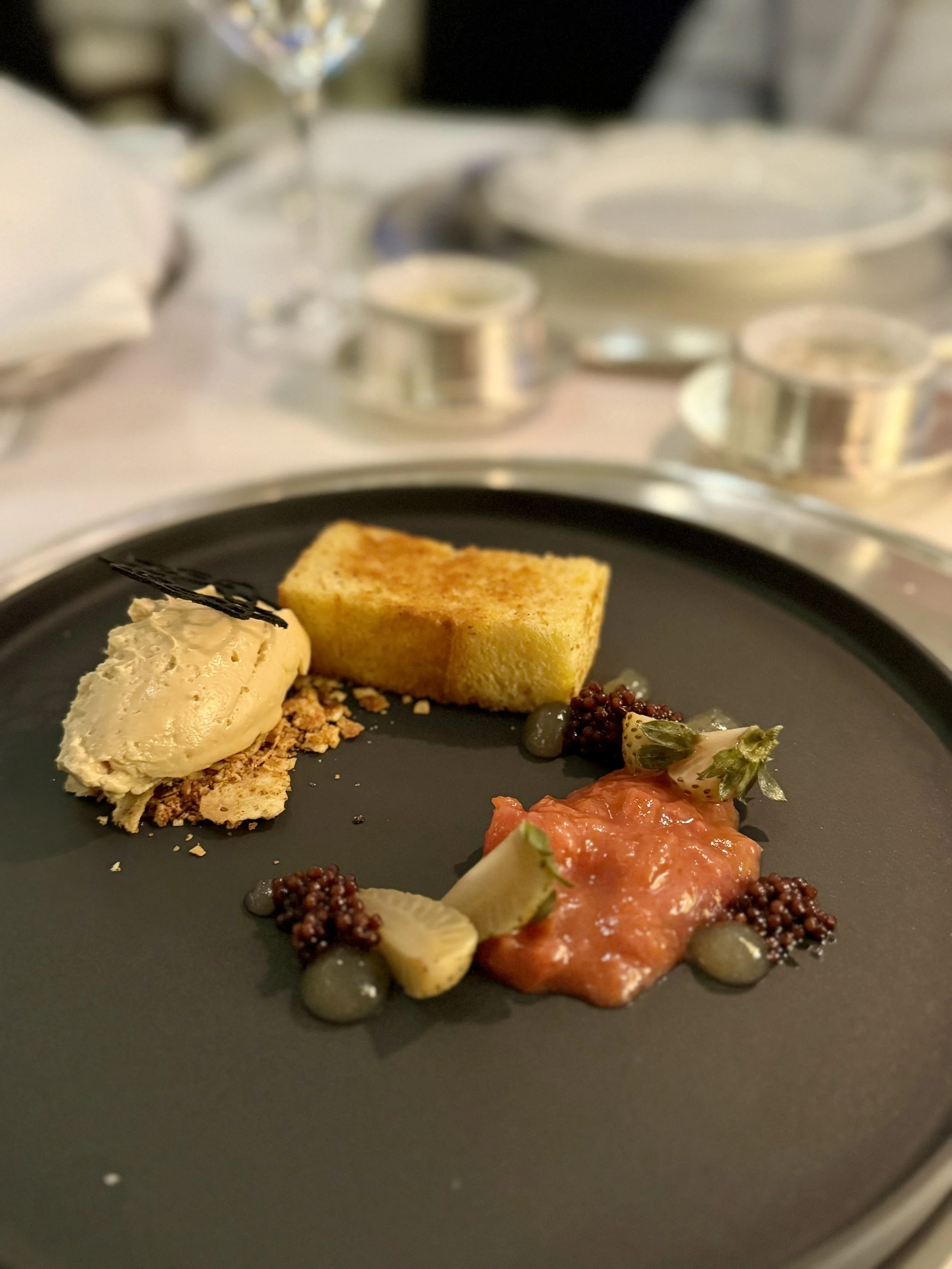 For main course, I chose the white sturgeon sous-vide with variations of cauliflower, pickled gooseberries and sage sauce. I don’t quite recall what my partner had, because I don’t see it on the menu anymore. I believe it was some sort of game meat. Many people love caviar, but sturgeon fish is a delicacy of its own. I feel like in the fish world, the uglier the fish, the tastier it is. I mean, just look at monkfish or turbot - heinous creatures but fabulous eating.