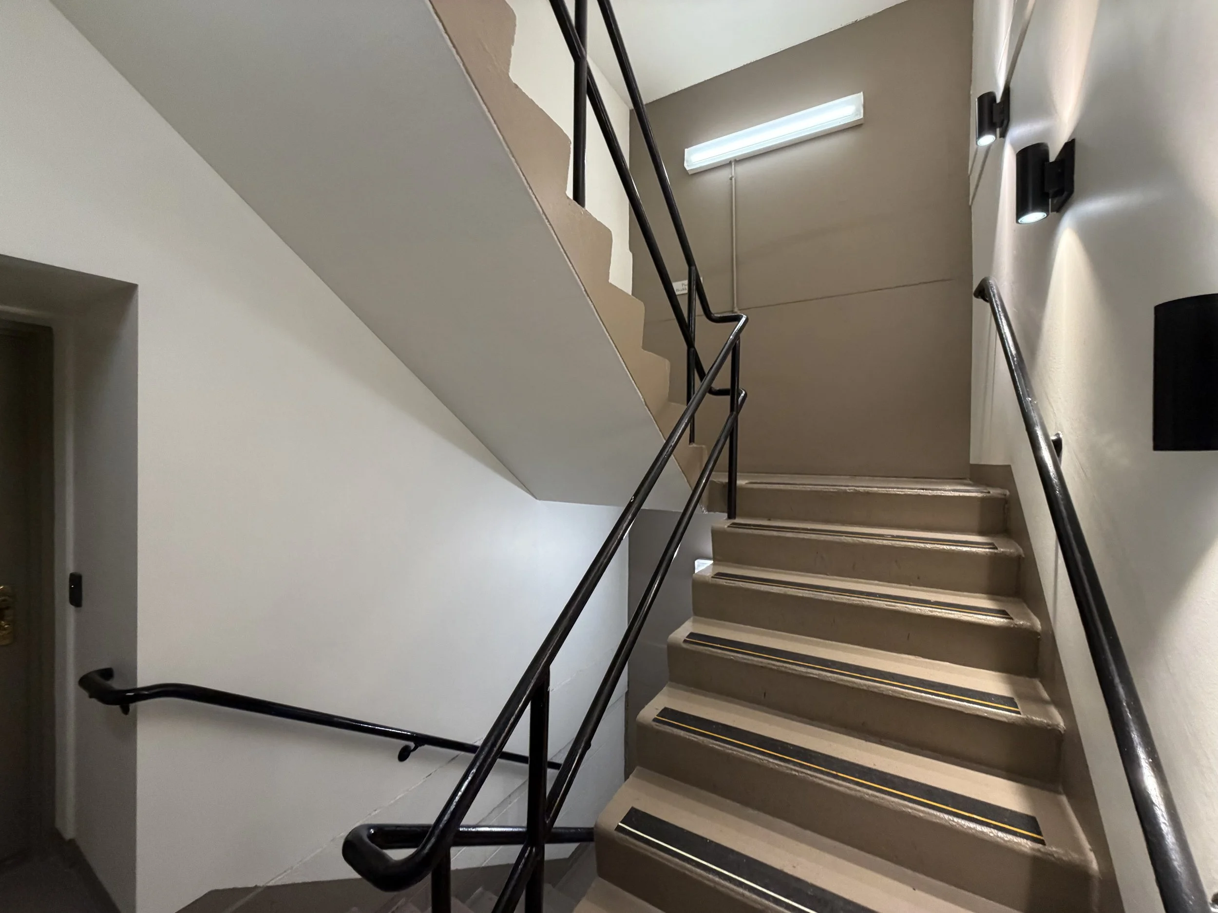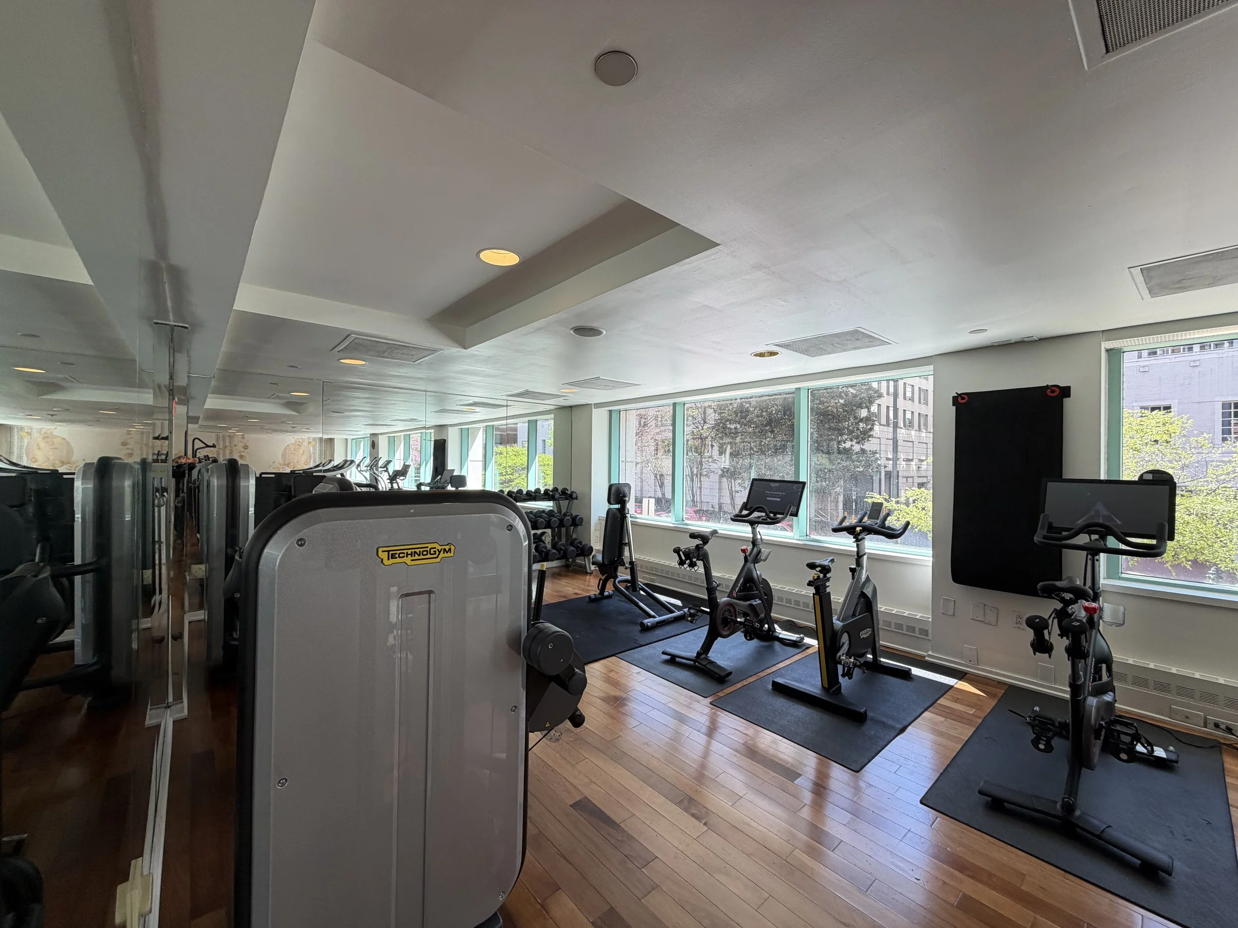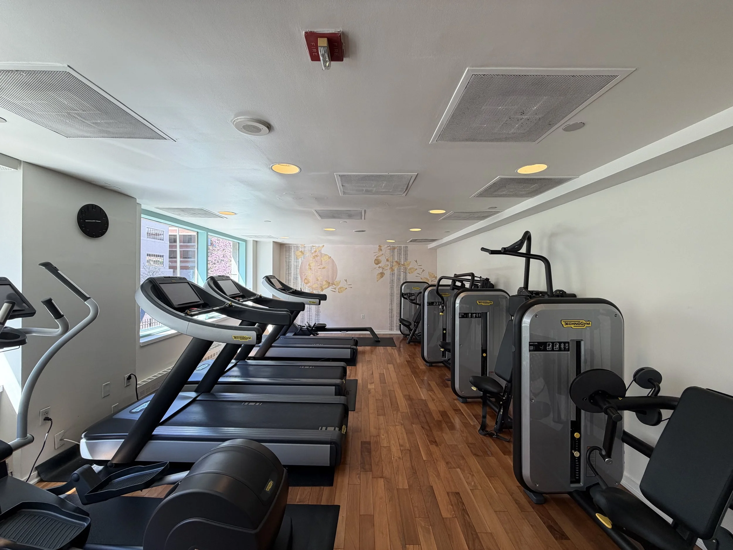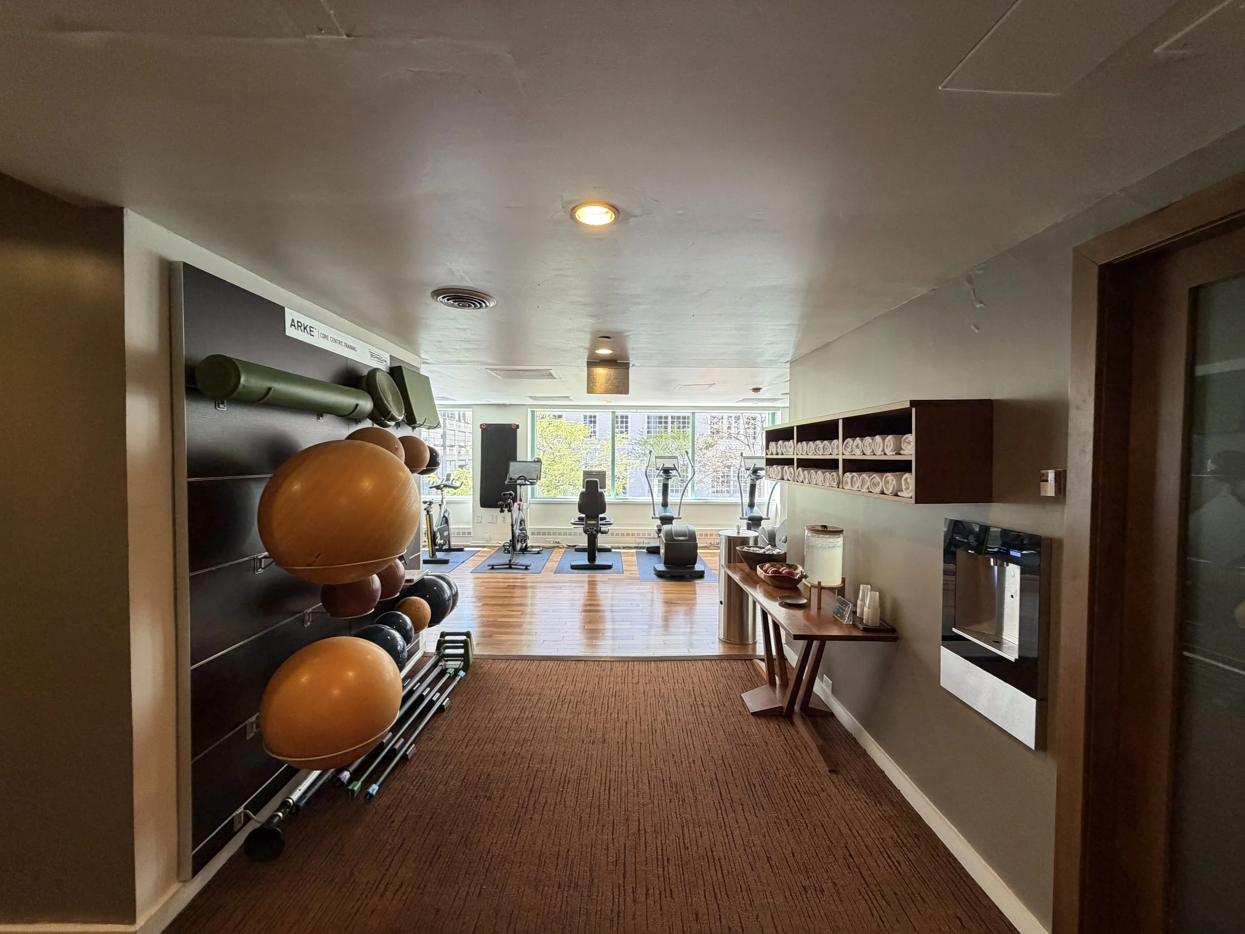 To get to the gym, you first have to take the elevator to the third floor. Then you’d turn right and walk to the very end of the hallway to reach the staircase.