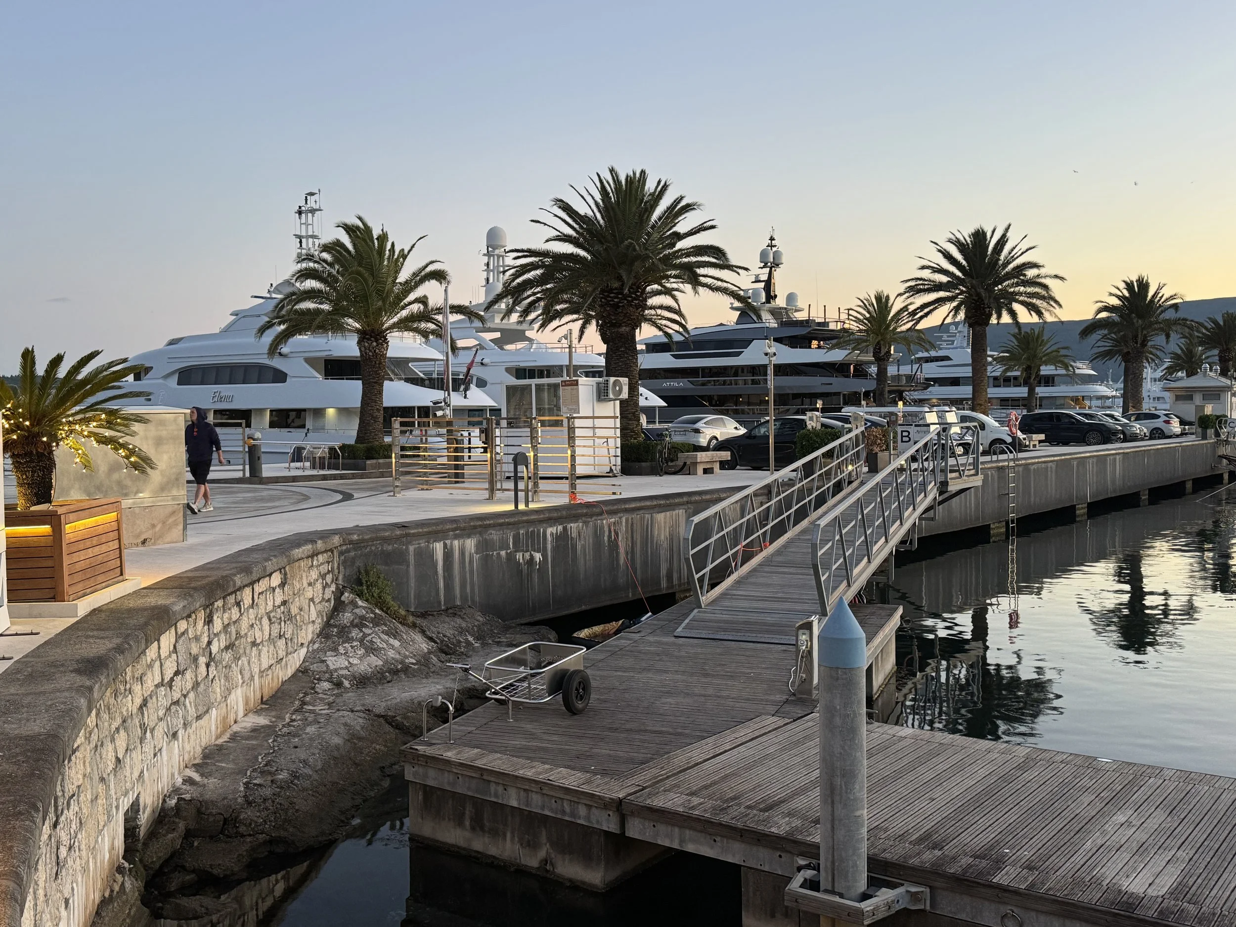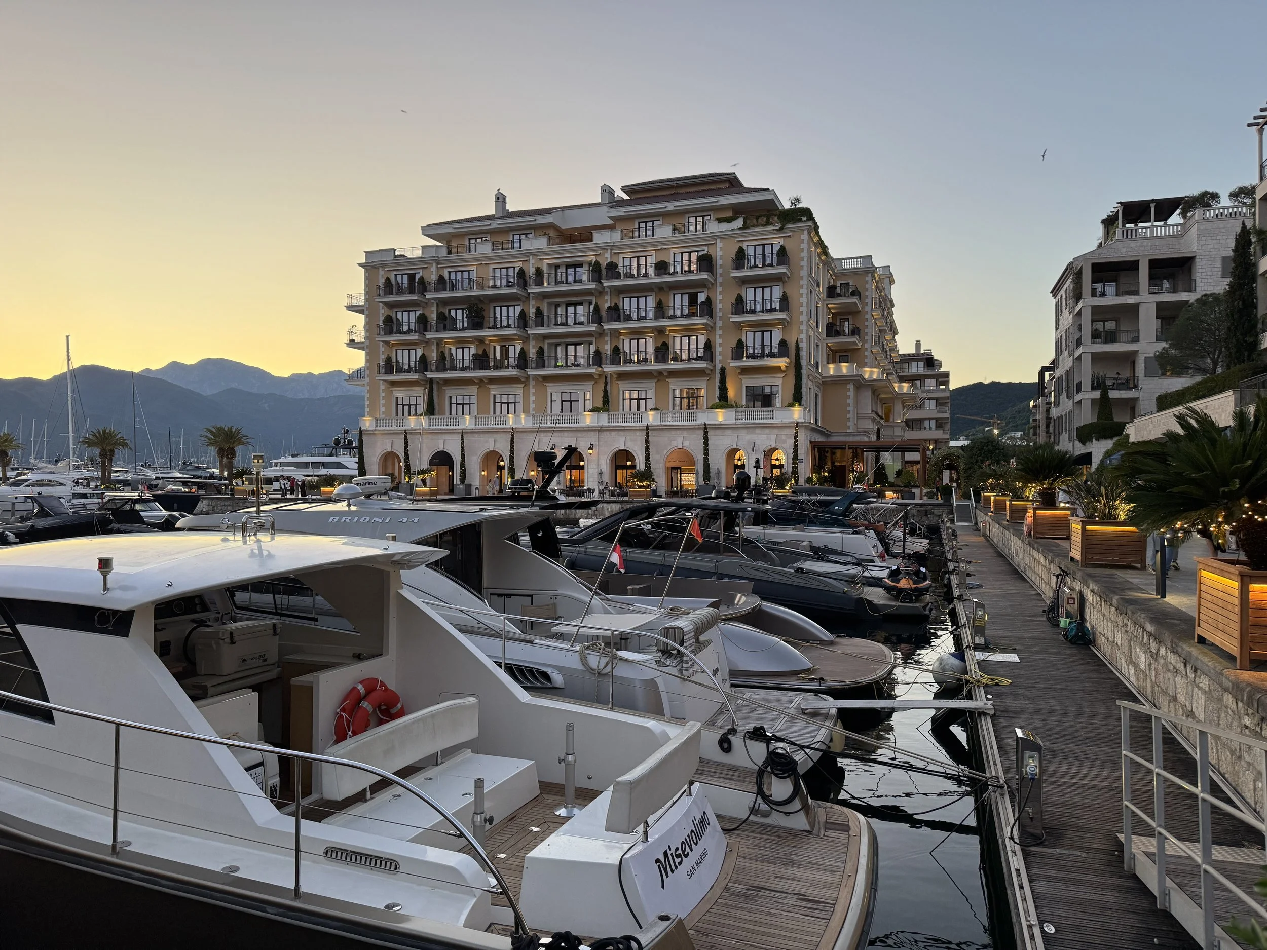 The hotel sent us a 20-ish foot tender, which was sufficient for the two of us. This is random but, I saw Andrey Guryev’s 350-ft Benetti Luminosity docked at the end of the marina. Apparently, the Montenegrin government has been paying for the maintenance on it since the sanctions, and that’s got to hurt…