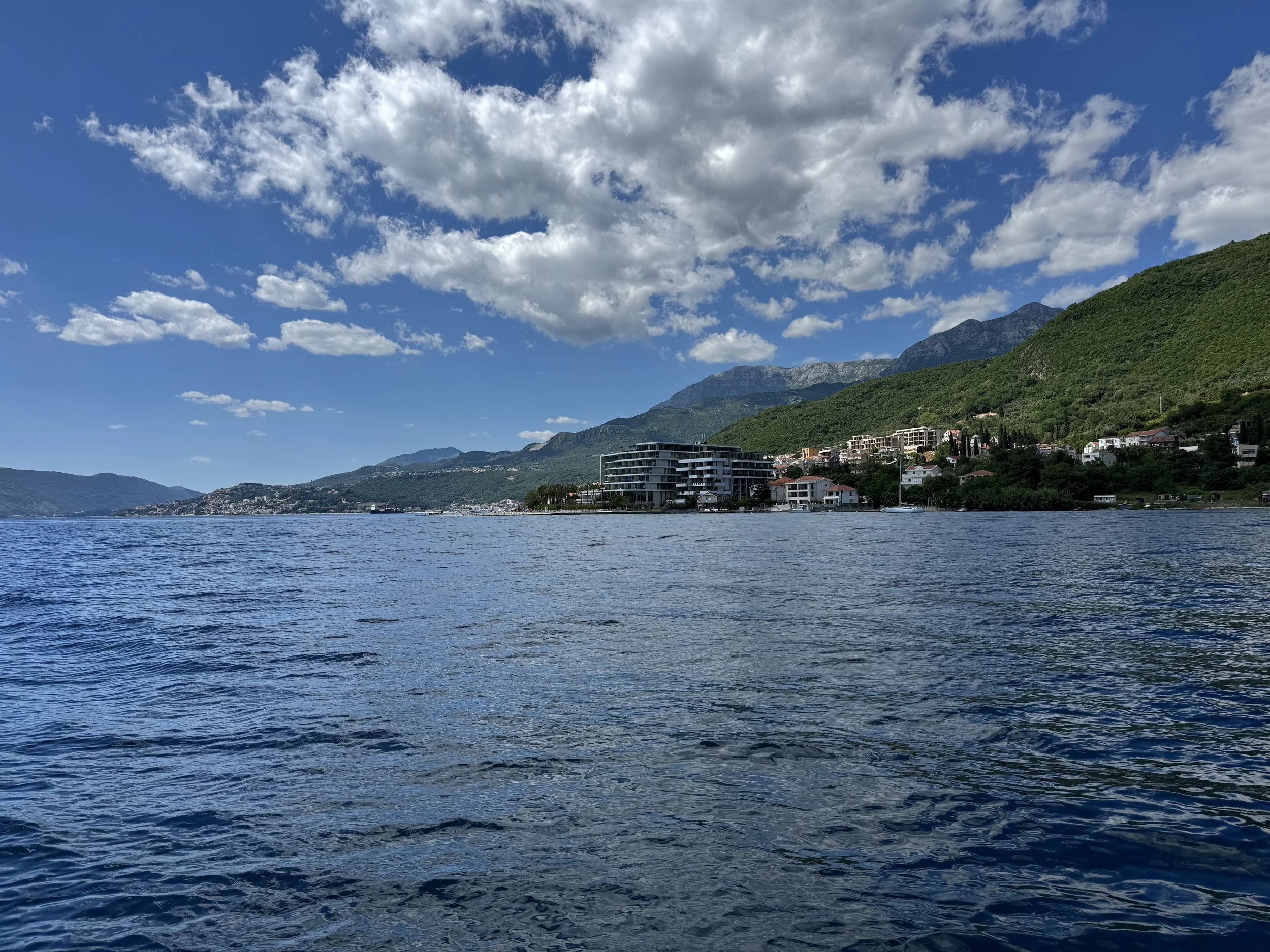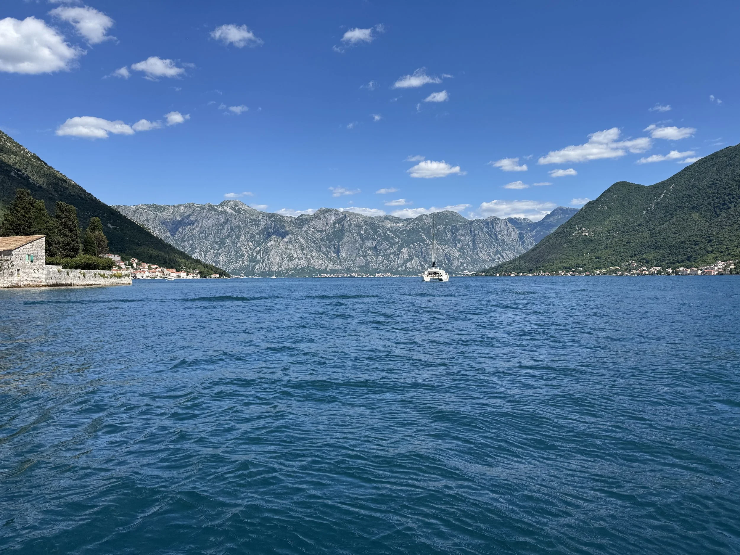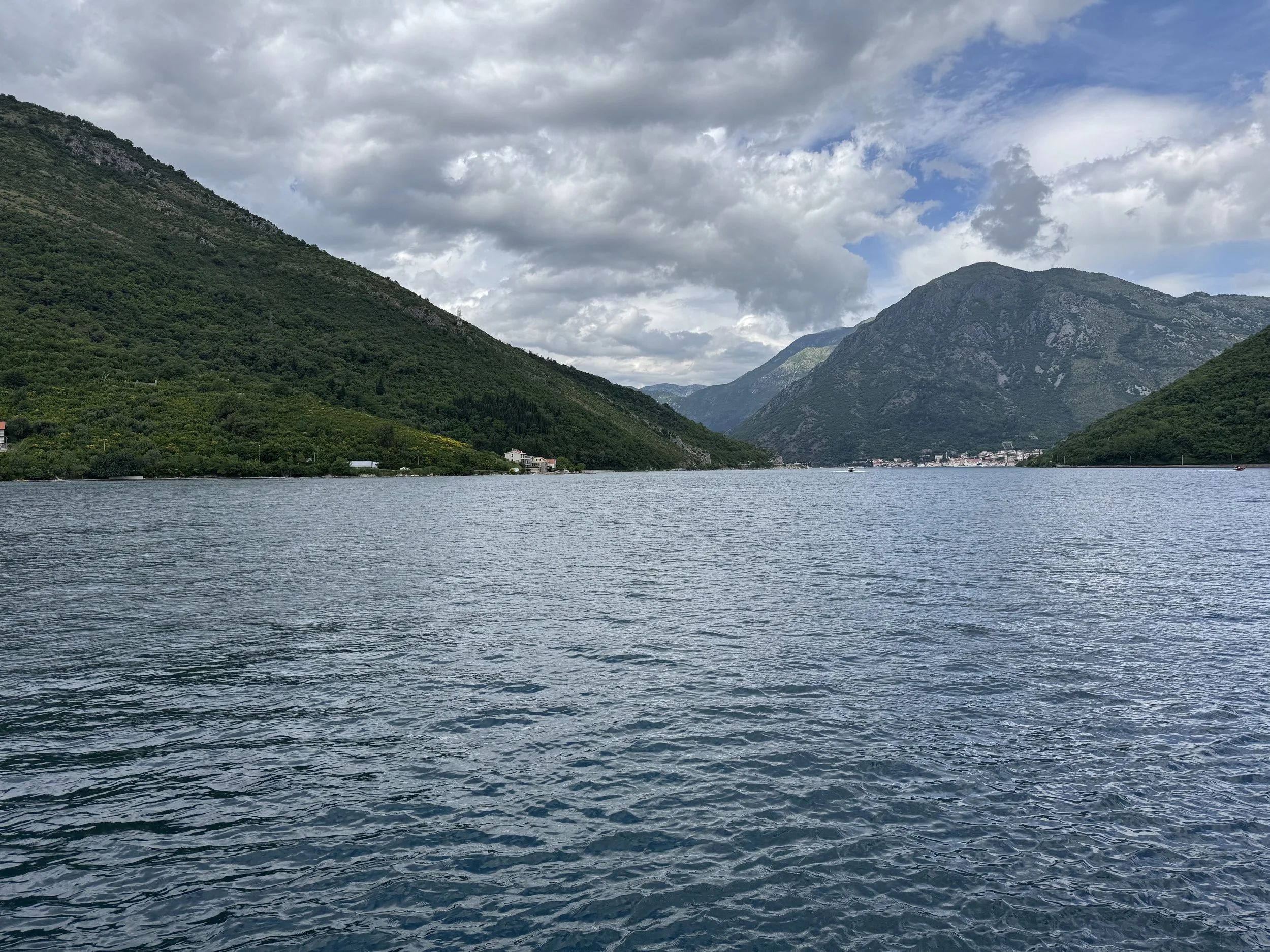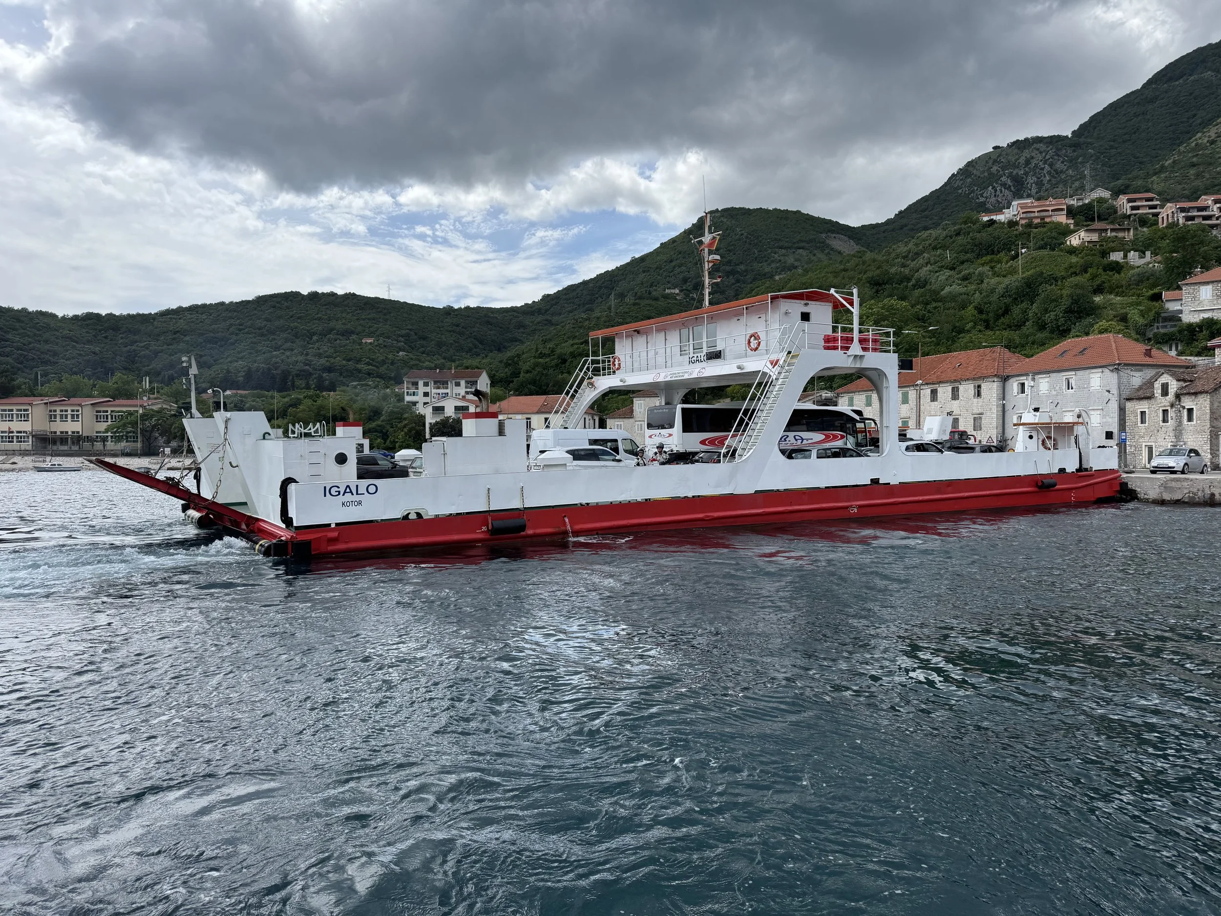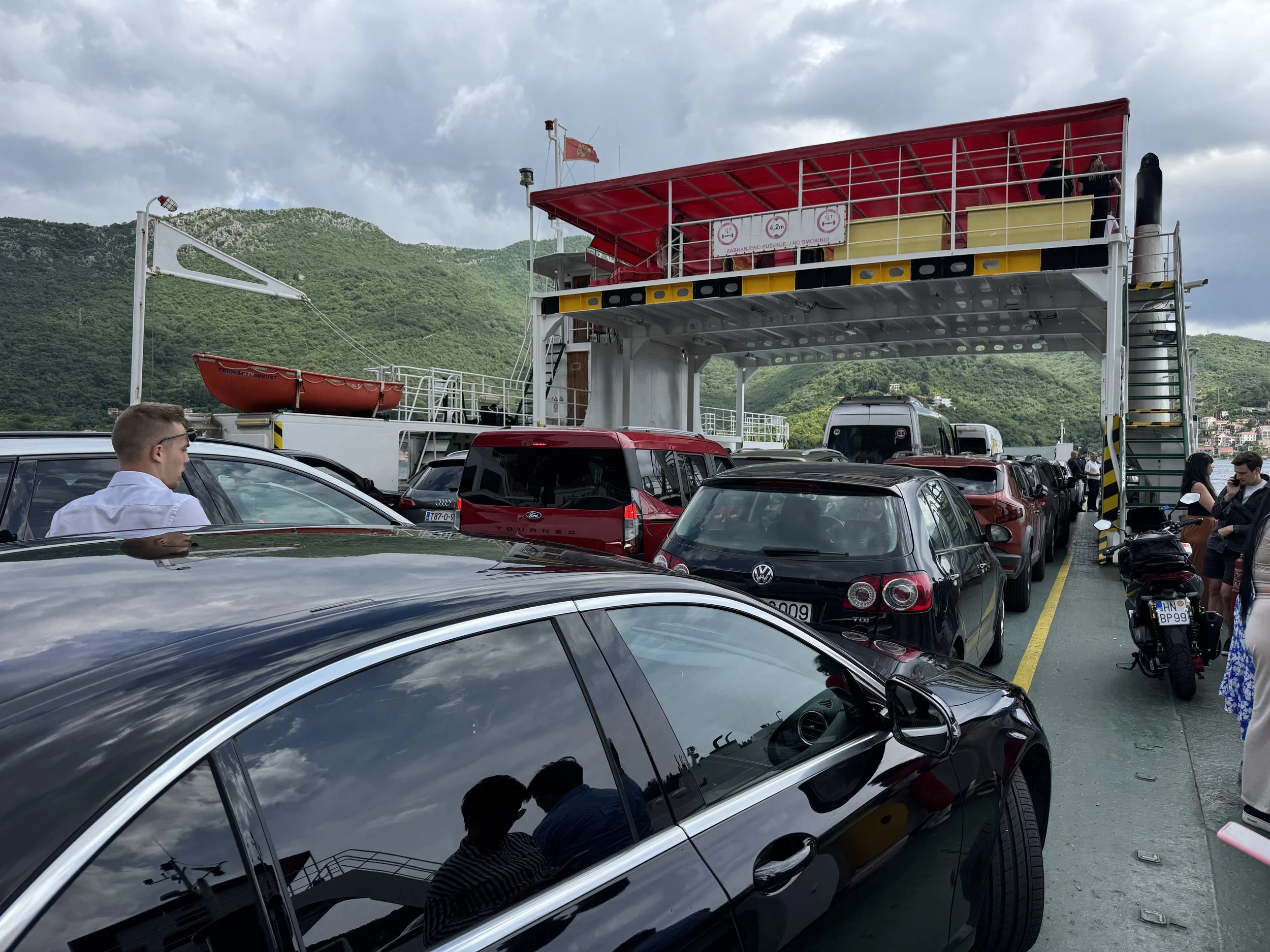 Shortly after entering Montenegro, we were driven onto a ferry that took us across the Bay of Kotor. This worked quite well, and we didn’t waste much time waiting around.