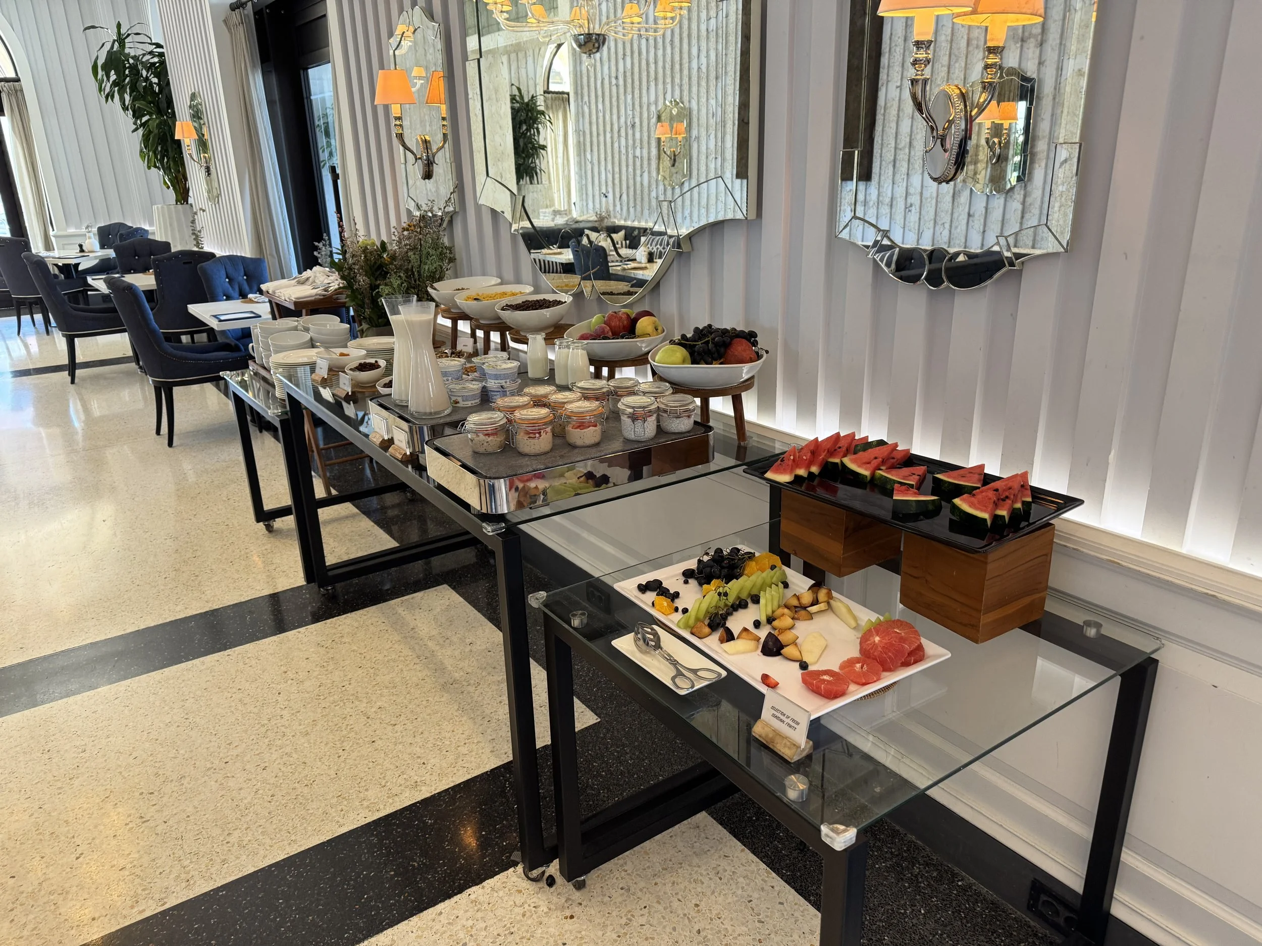 The interior of the restaurant was compact, as most of the tables were outside. During breakfast, there was a buffet.