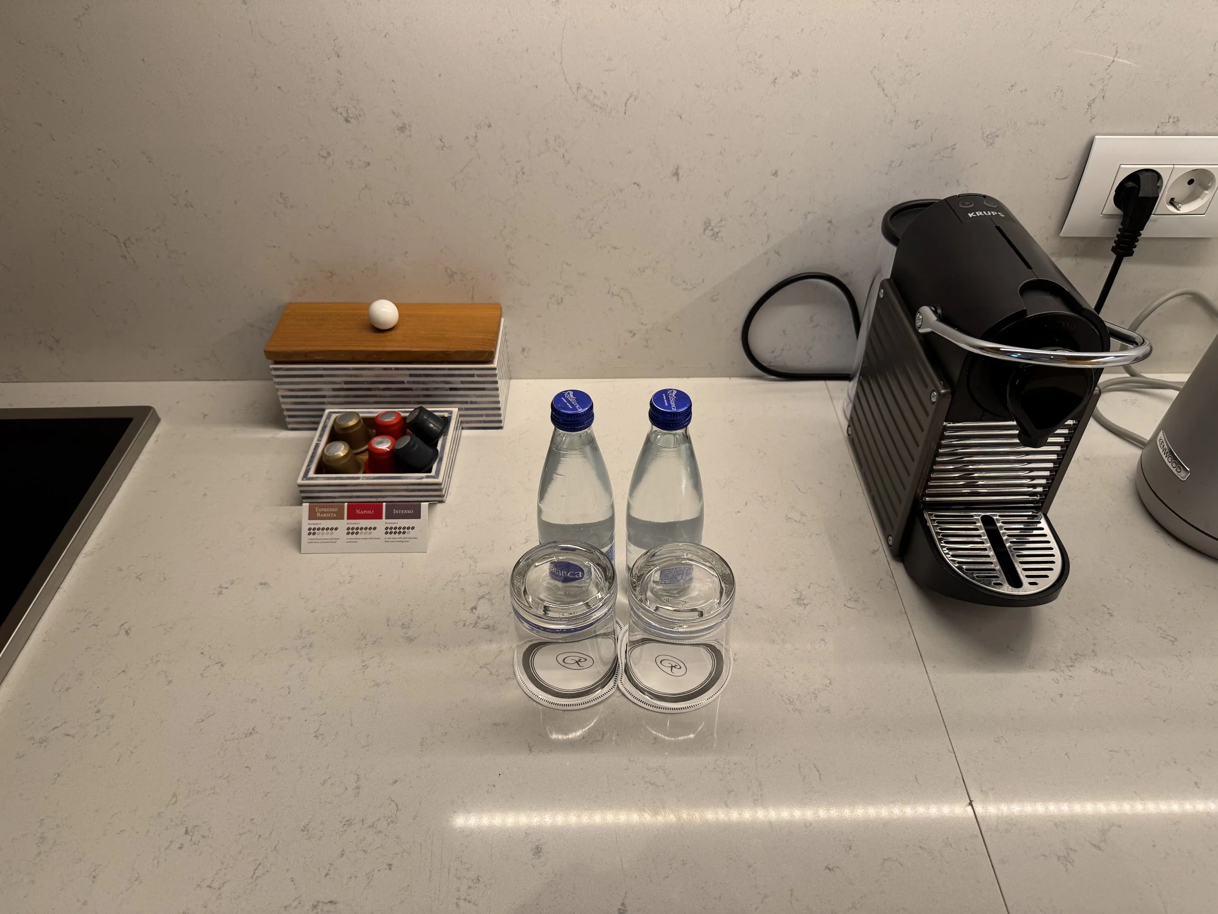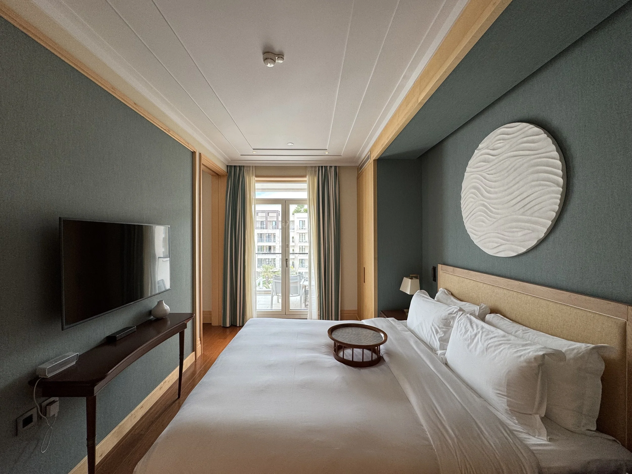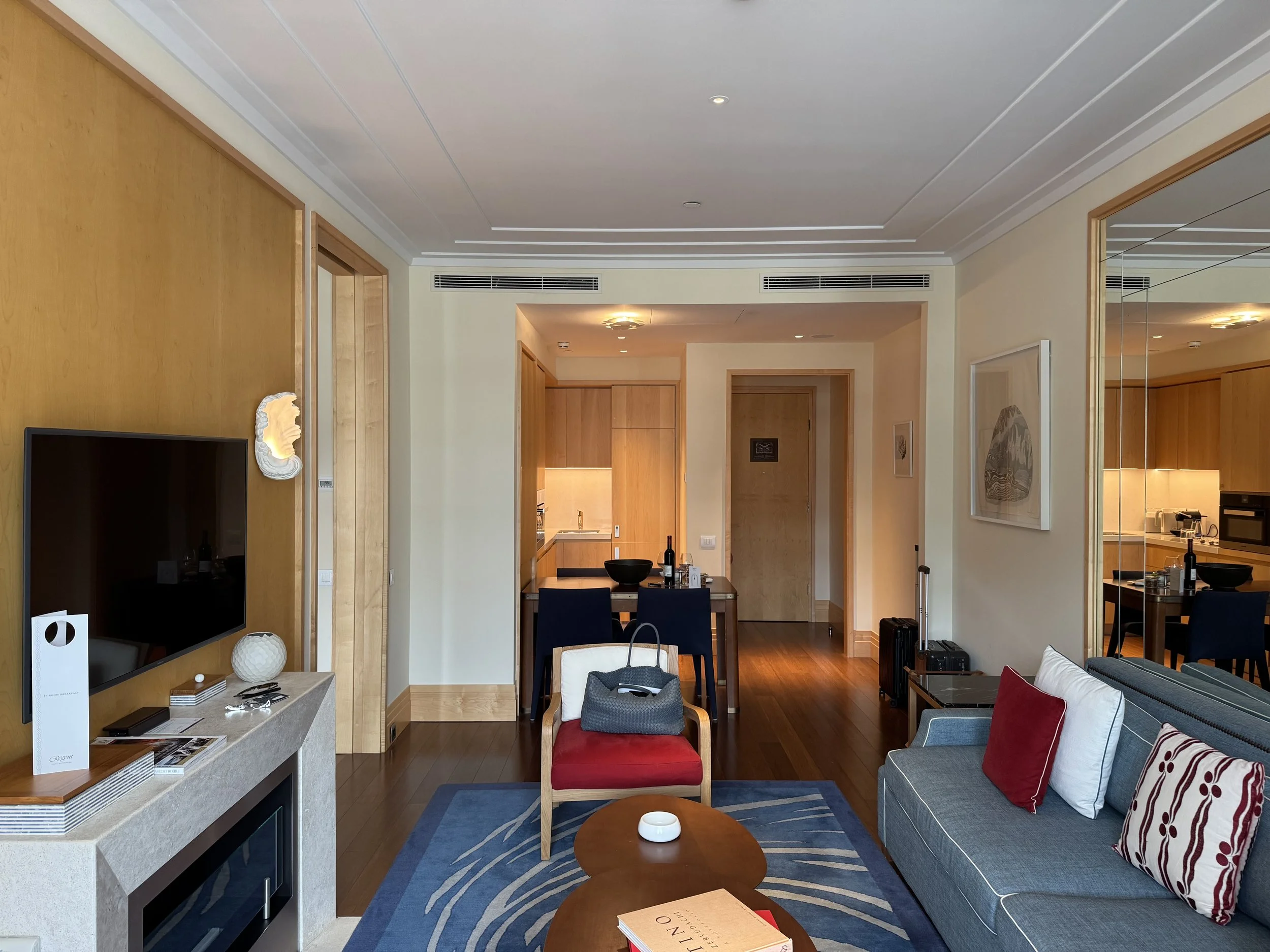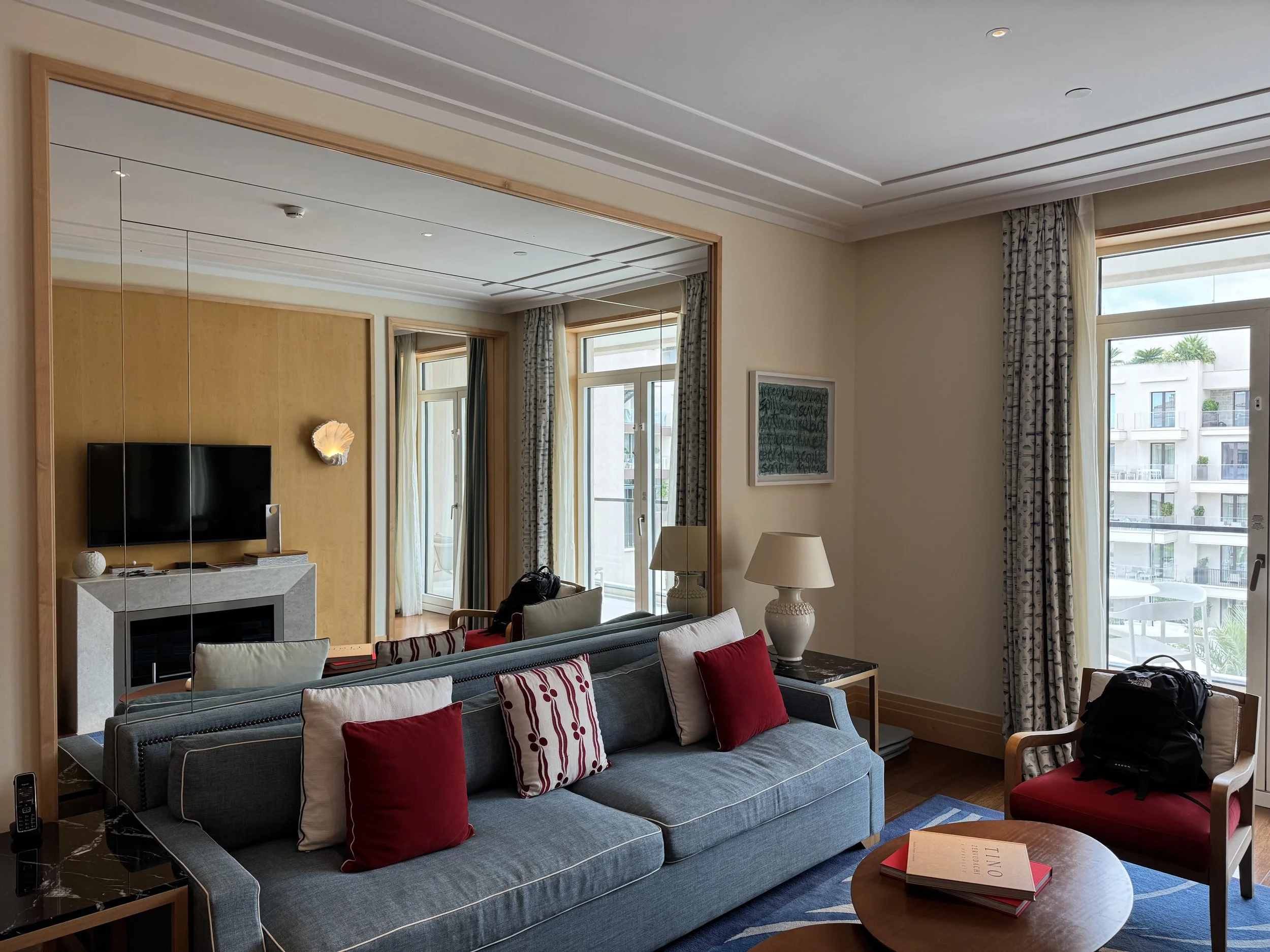 Check-in was friendly. Our booking was made via Amex Fine Hotels & Resorts. I originally booked a studio suite and was upgraded to a studio suite with (partial) sea view. The rates were pretty reasonable. I believe we paid around $600/night all-in for the suite. Late May was still early in the season, and the property didn’t feel very busy during our stay. There were a few different wings at the hotel, since some of them were residences. We were assigned a suite in the residence tower, which was more modern, albeit a bit ordinary. Like I have Miele at home, I don’t need that on my vacation, you know what I mean? If I were to return, I’d definitely ask to stay in the older wings.