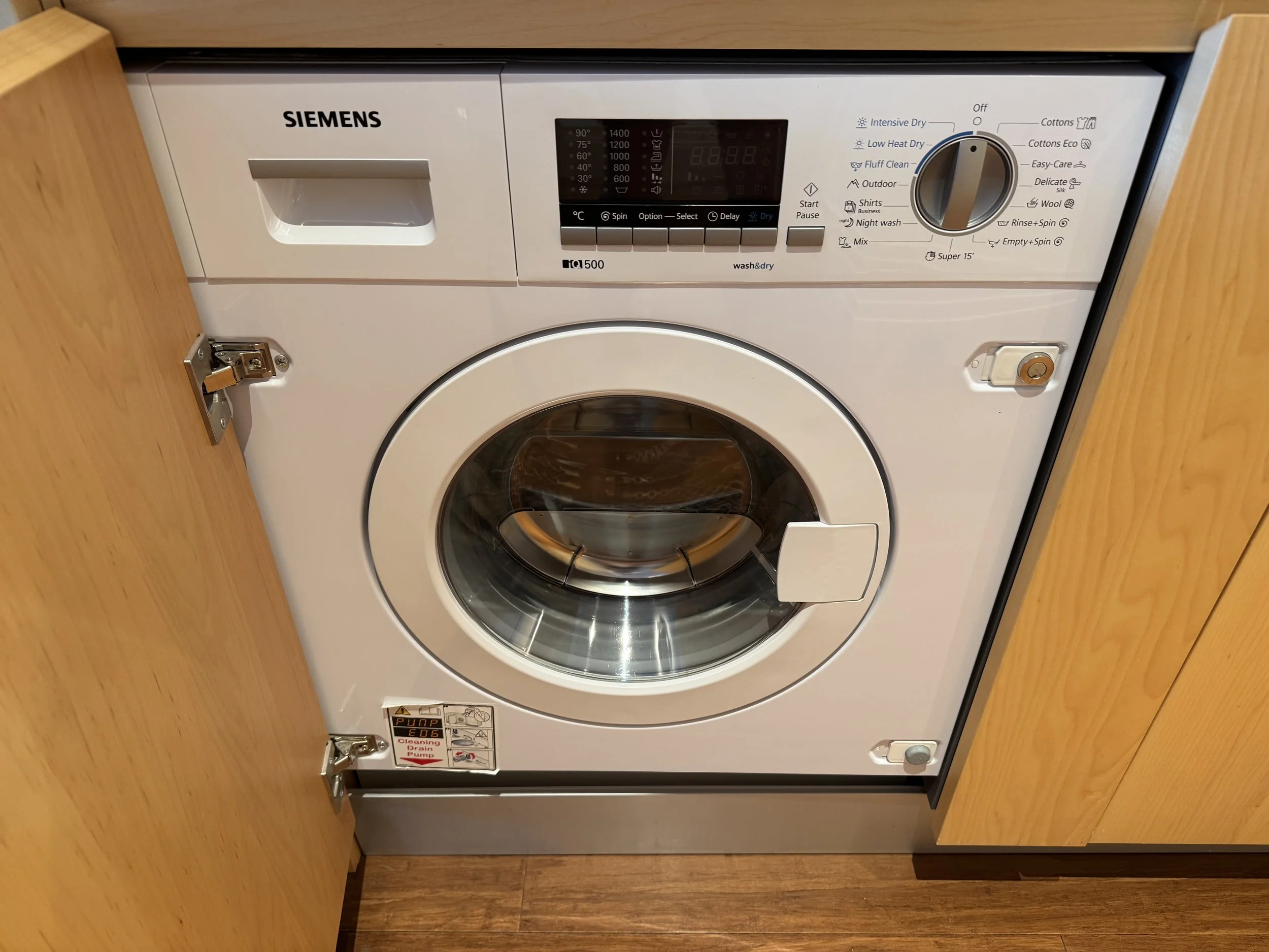 To the right of the foyer was a kitchenette, with a full-size fridge, a small cooktop, a dishwasher and a washing machine. I feel like Europe loves to put washing machines in the kitchen.