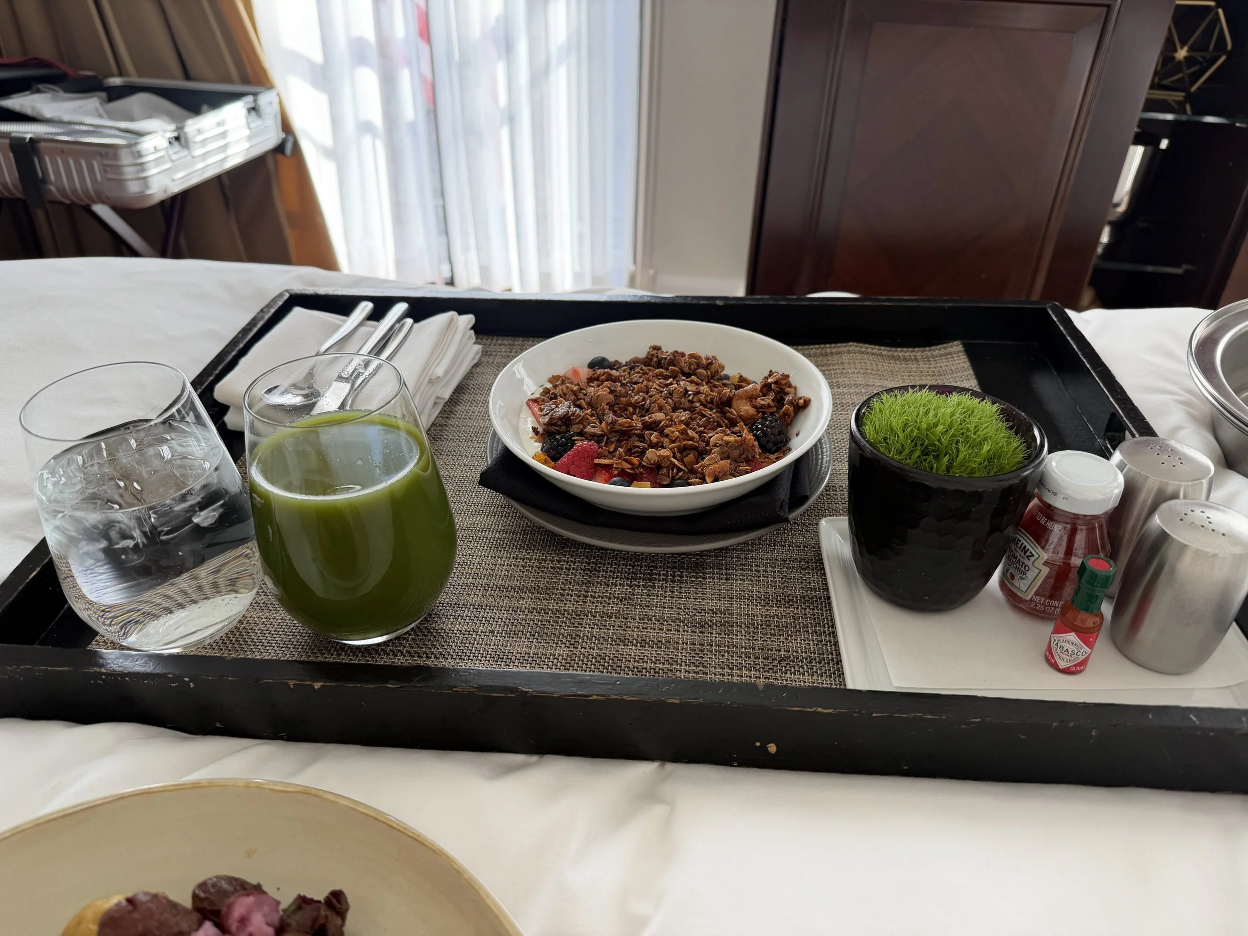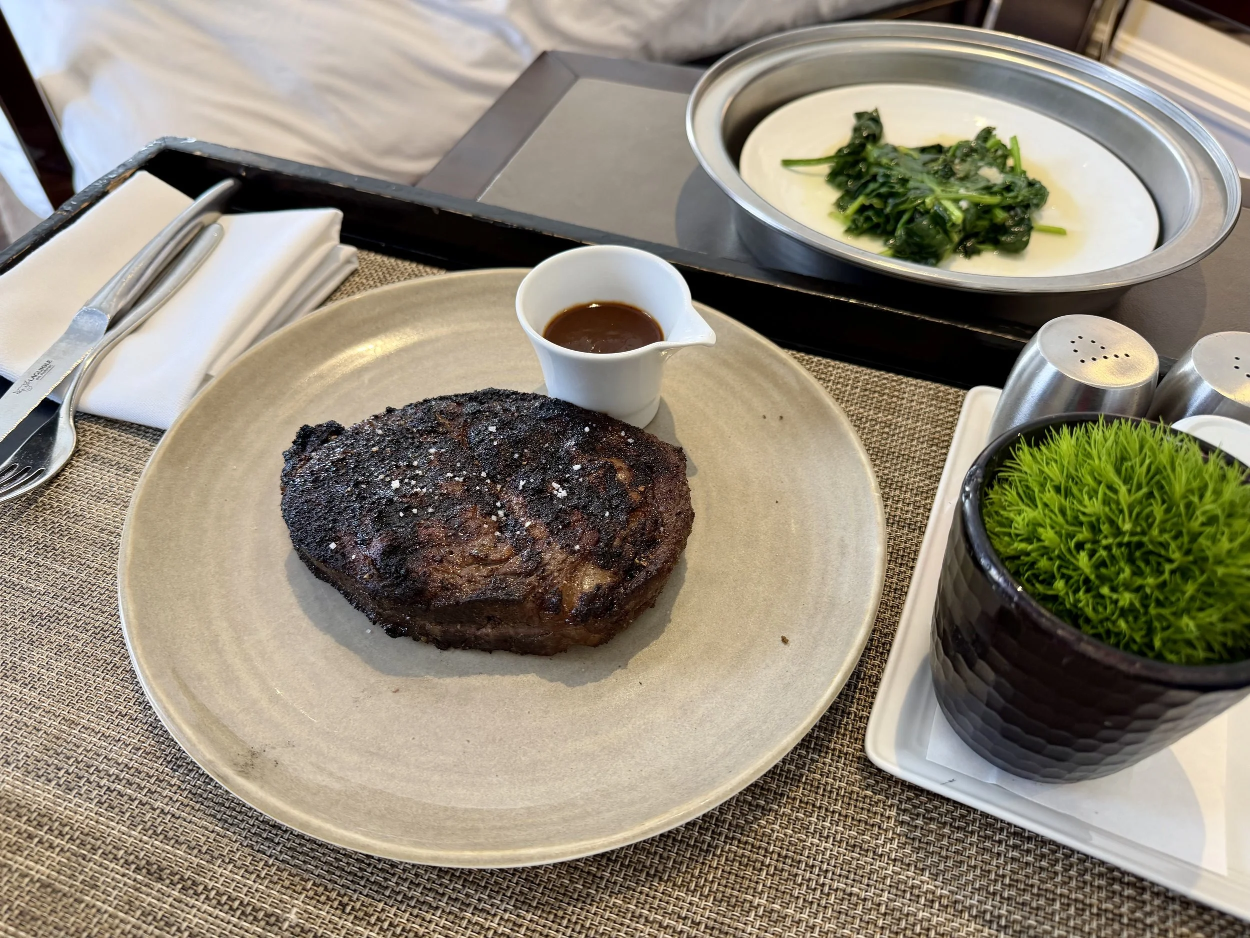 I had room service lunch one day. The food came from the Wolfgang Puck steakhouse, so I figured I’d survey the quality of the steak. It’s only in the interest of research, I swear!
