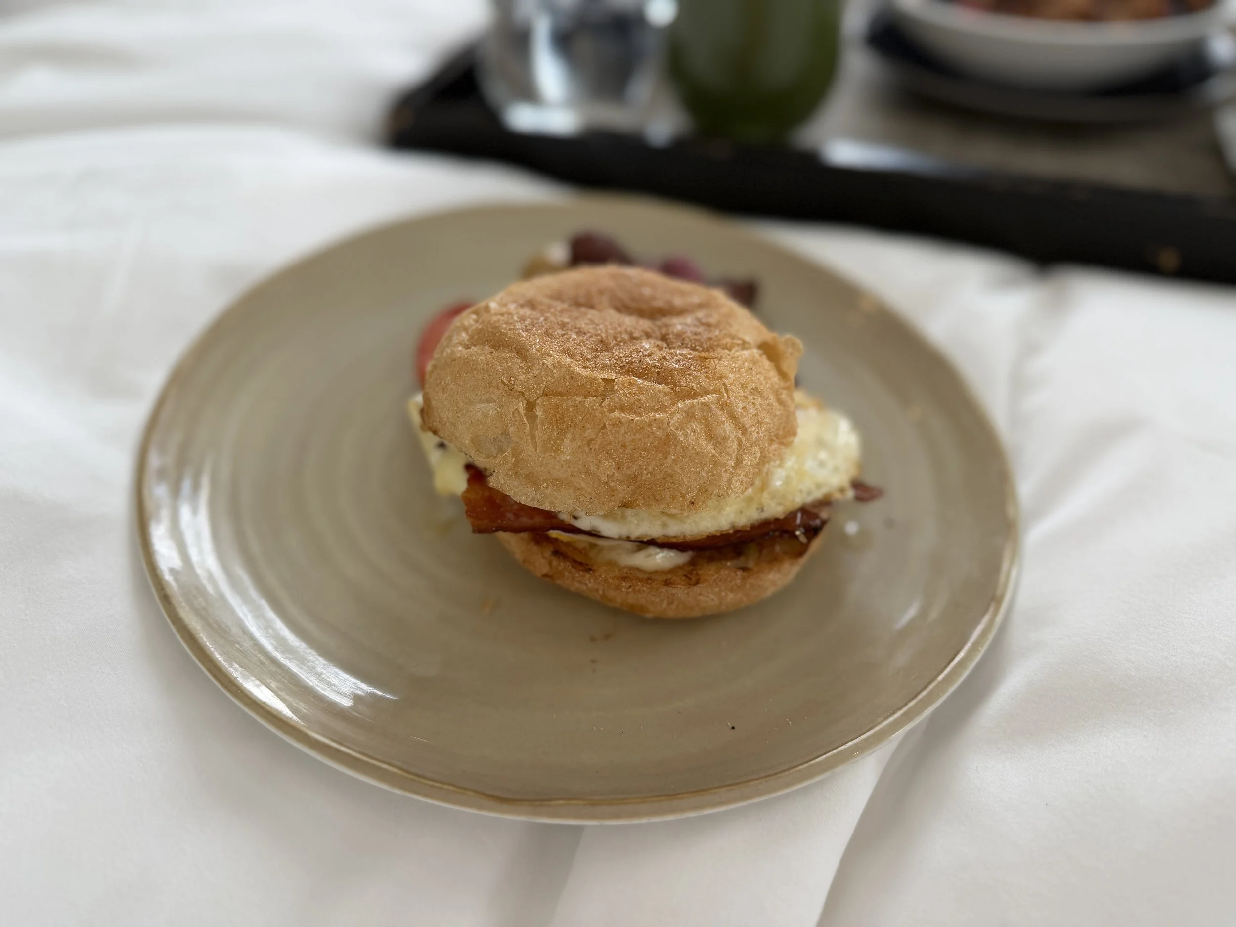 We only had breakfast once. My partner and I shared a yoghurt parfait and a breakfast sandwich. Both were good.