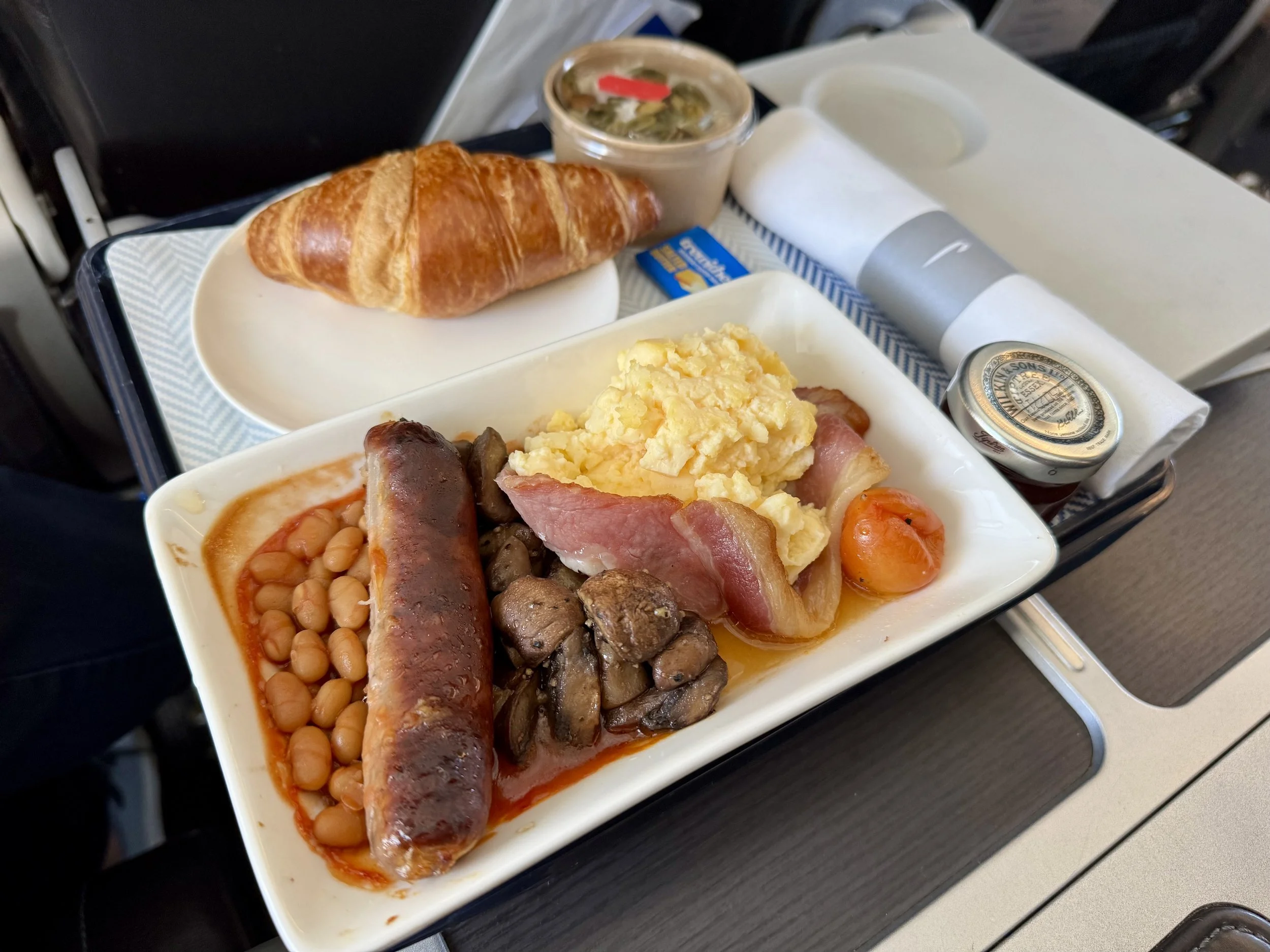 Breakfast wasn’t served until an hour into the flight. The crew were lovely, though. BA staffed two flight attendants for business class. In the States, it’s just one flight attendant for an entire narrowbody first class cabin.