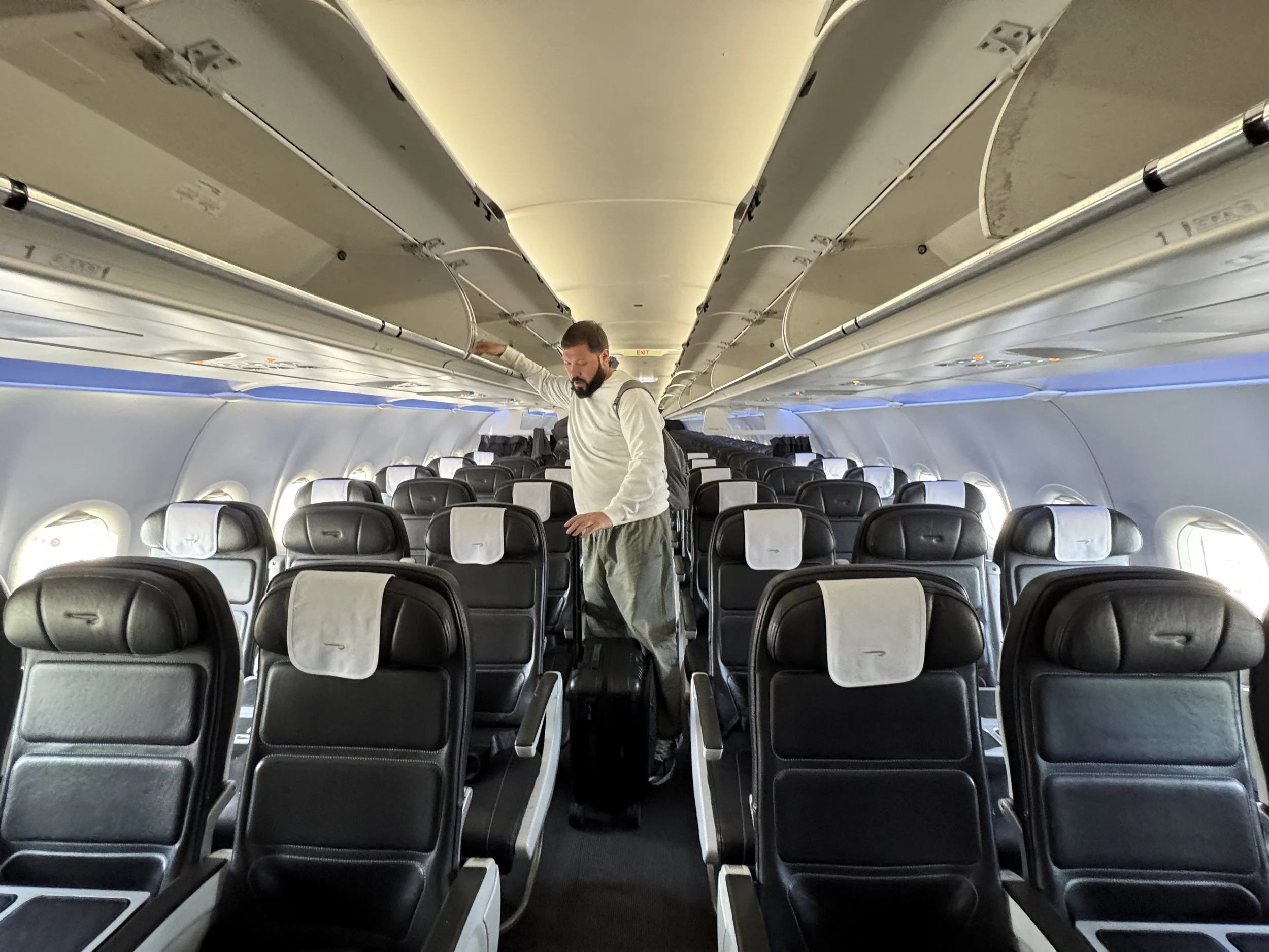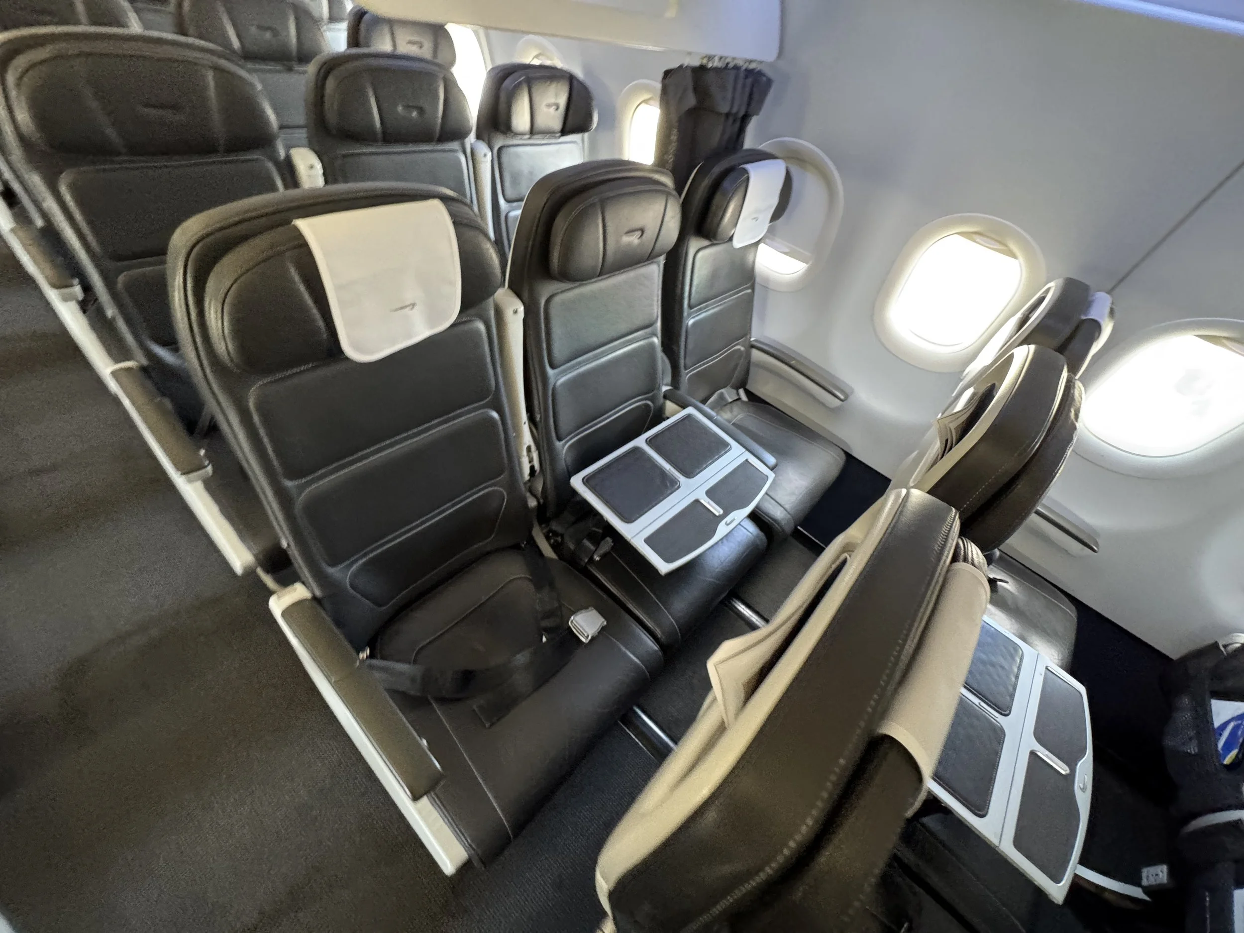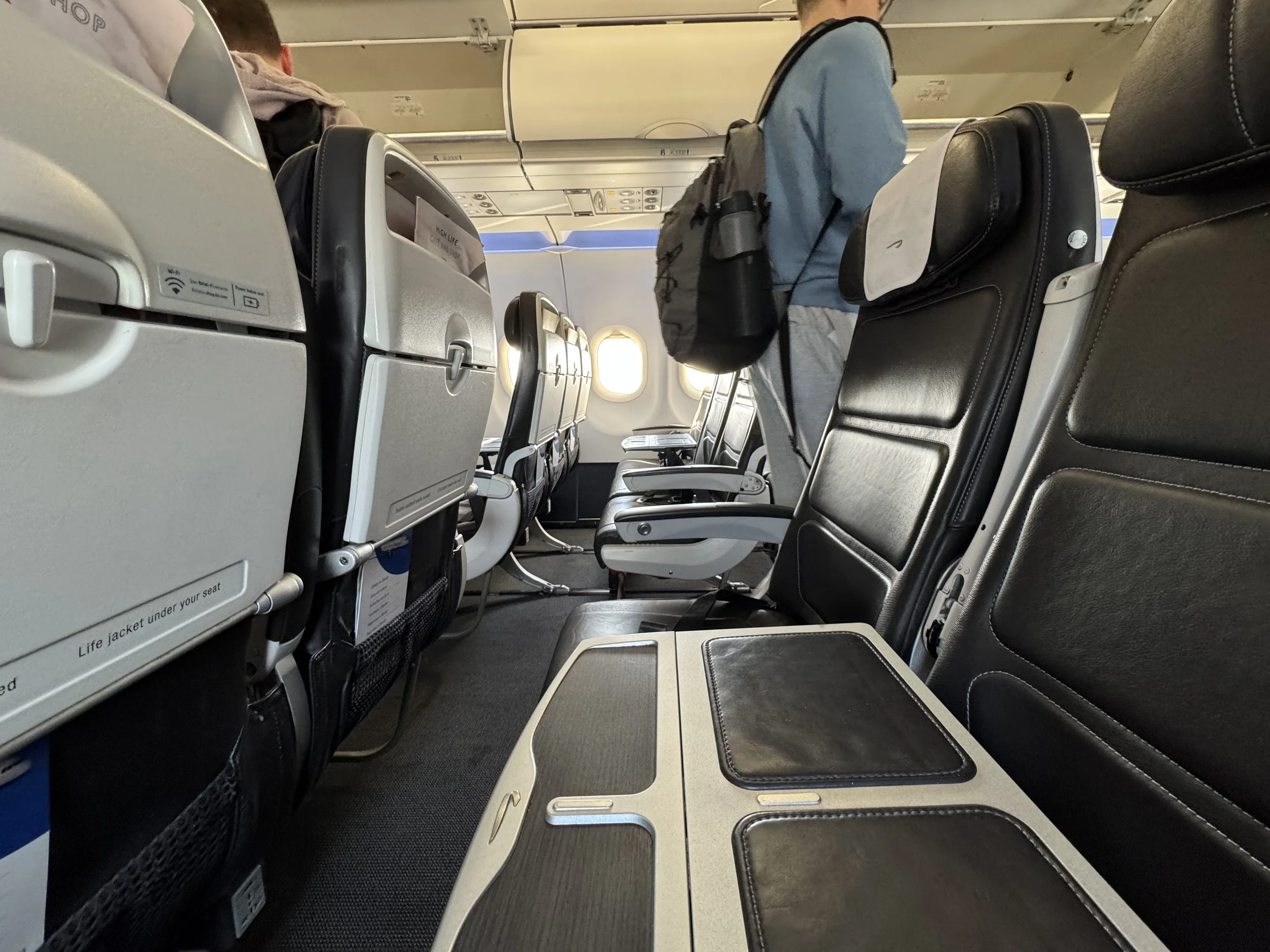 Thankfully, I had the whole row to myself, which helped me stretch out a bit. The cabin was cleaner than the cabins in the US, with the exception of some crumbs on the floor.