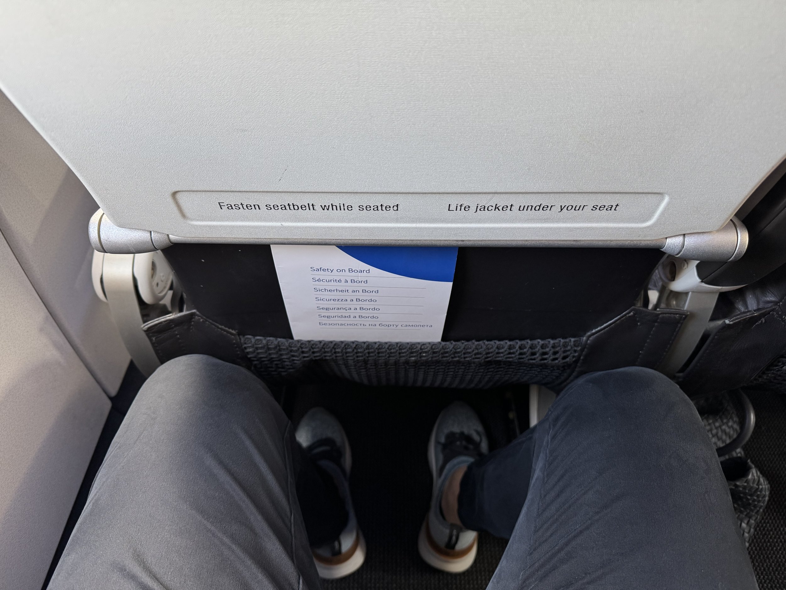 Since I booked last minute, I couldn’t get a bulkhead seat. The legroom here was simply torture😭.