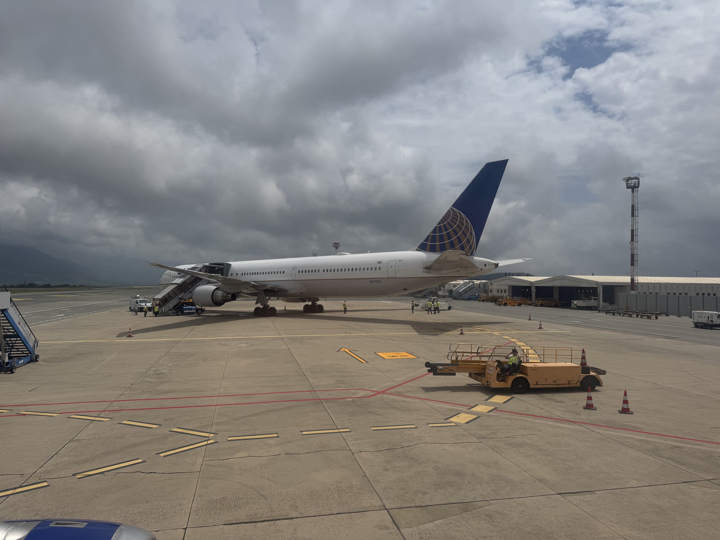 We pulled into a remote stand next to the United B767 from Newark. Other than the lack of legroom, it was a rather pleasant flight. We hit some moderate chops on our descent, and the flight attendant offered to pour my champagne into a plastic cup for me. From here, I got picked up by our driver from the Regent Porto Montenegro and headed across the border.