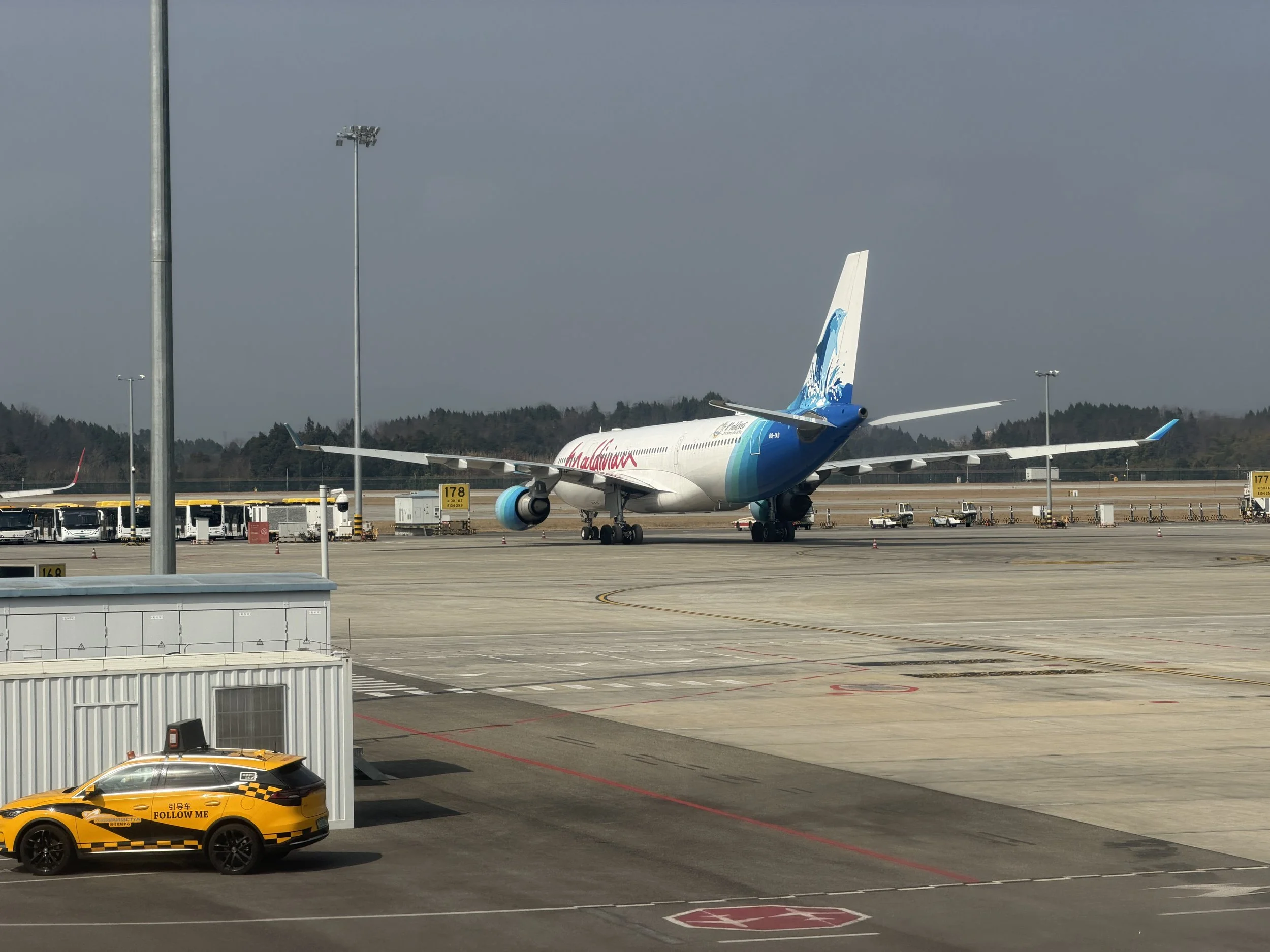 We touched down at Tianfu Airport just a few minutes ahead of schedule and taxied across the airfield. I spotted this beautiful Maldivian A330 along the way. What a rare sight for us based in North America.