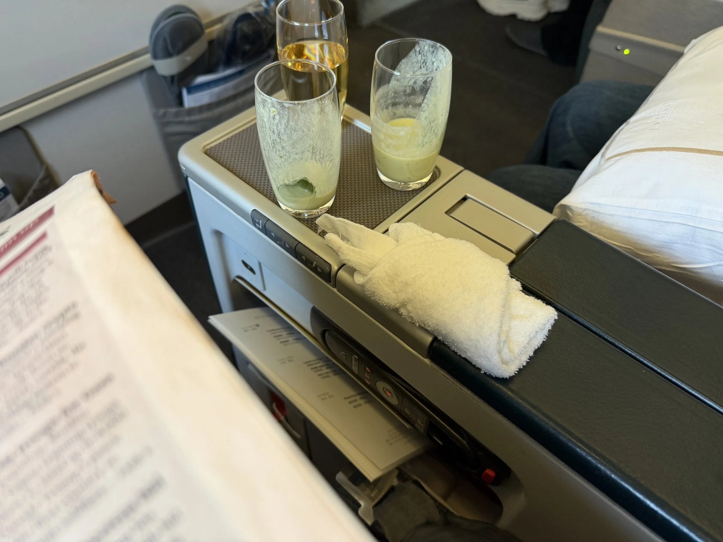 This was then followed by a hot towel. Unfortunately, business class hot towels were not served on a towel dish😝.