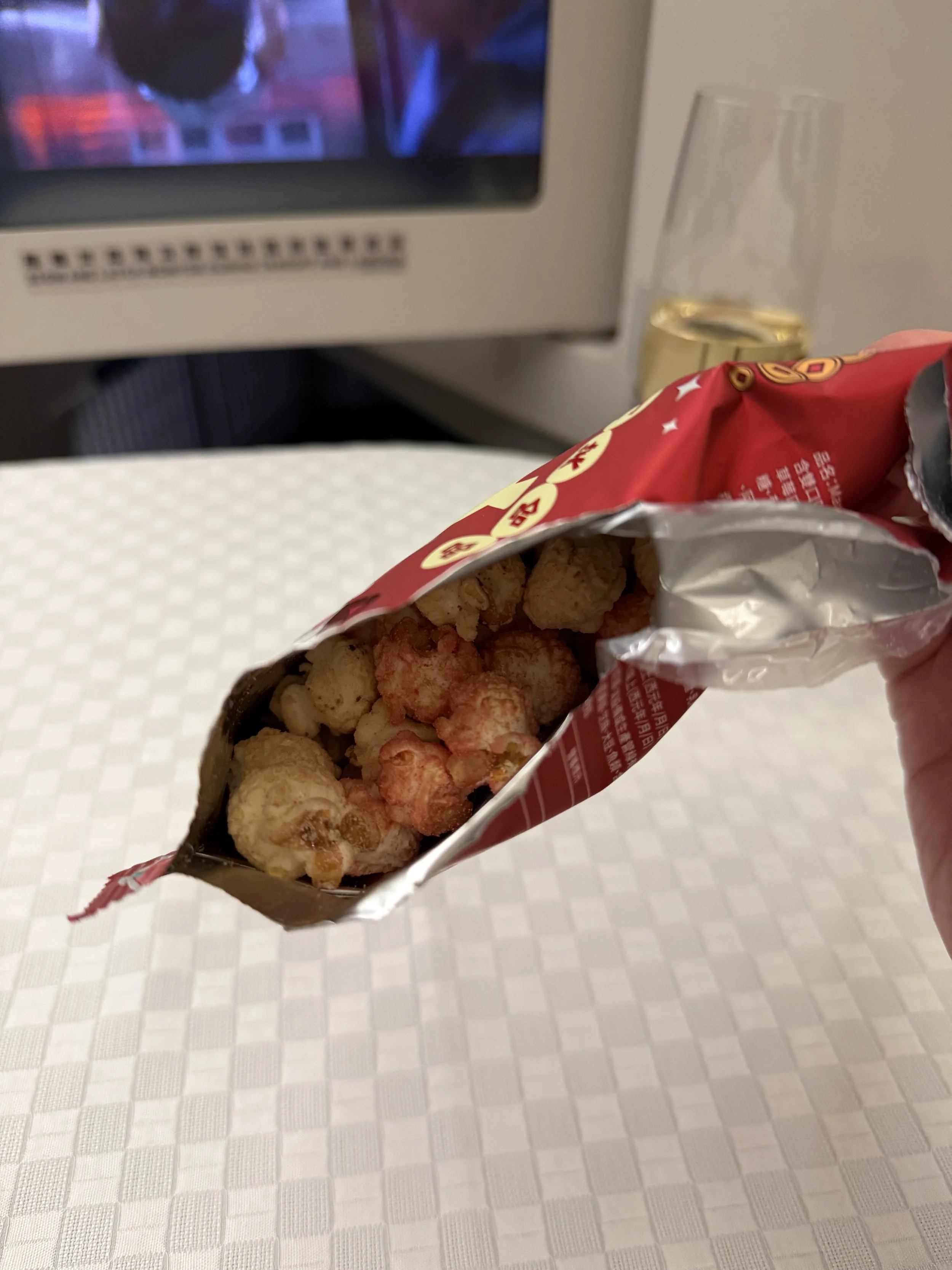 Similar to my previous flight from Hong Kong, the crew passed out some candies before landing.