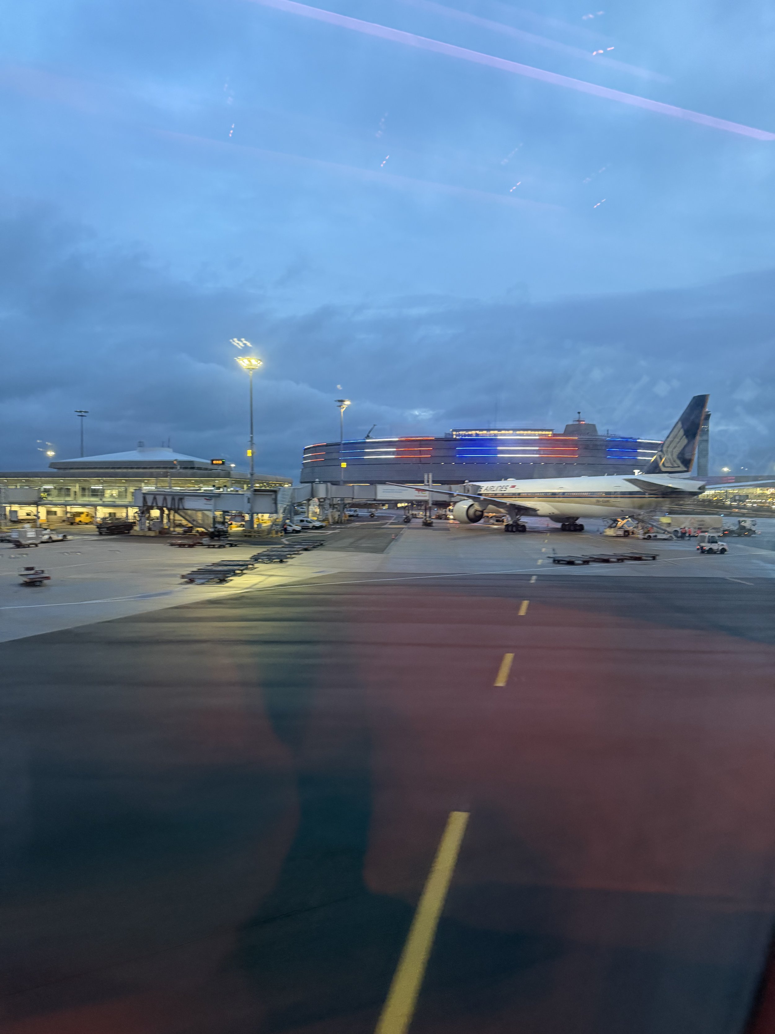 We pulled into CDG’s famous/infamous Terminal 1, right next to a Singapore Airlines B77W.