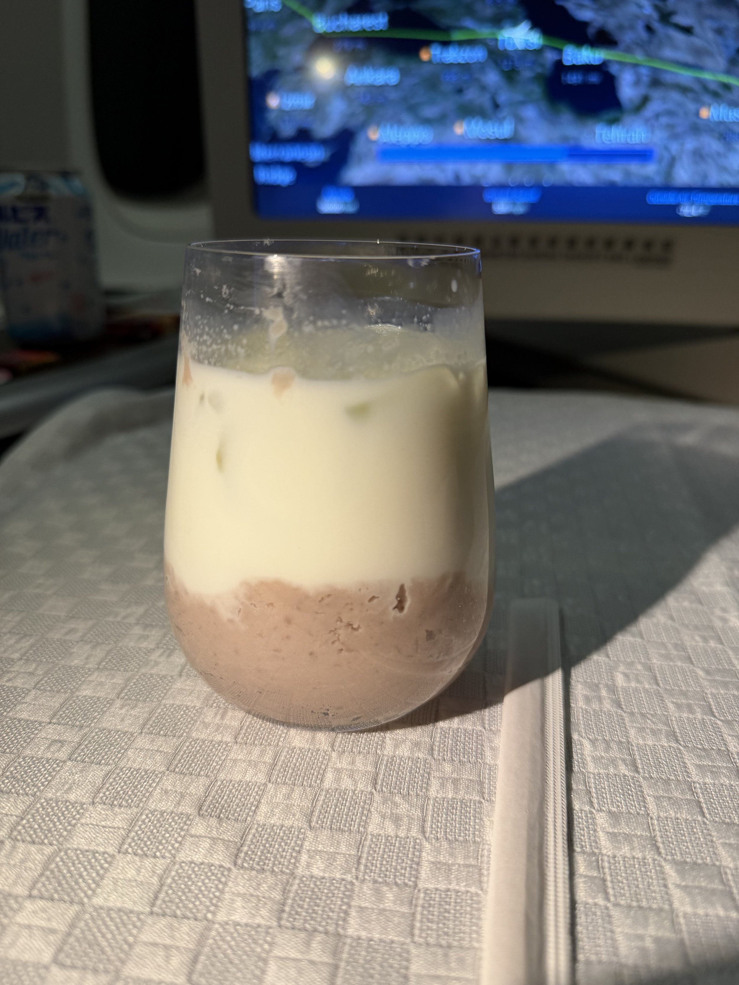 Breakfast started with a hot towel, as well as a drink of choice. I asked the FA if they had bubble tea onboard, better yet, they had taro milk made with fresh taro purée.