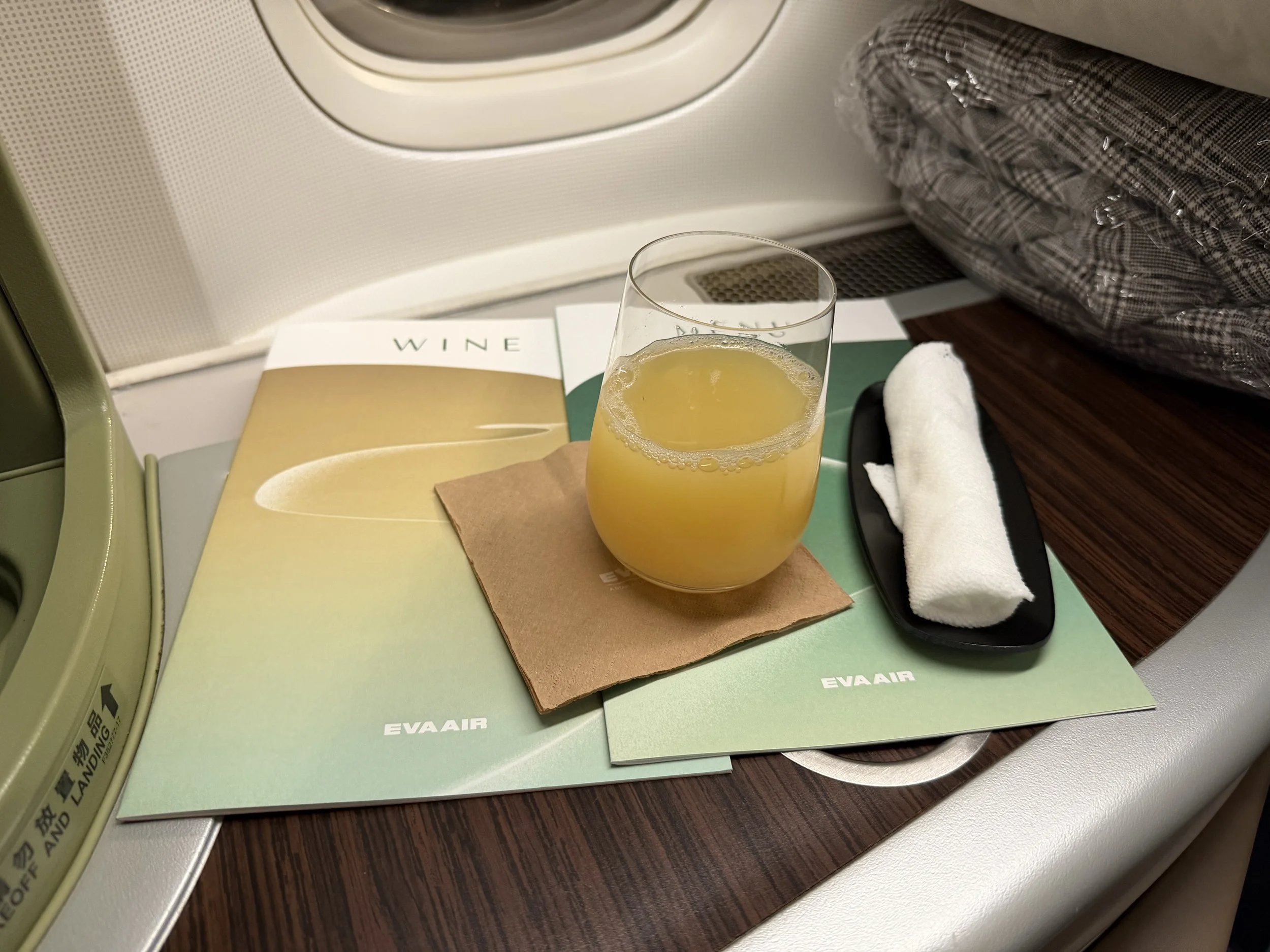 Upon settling in, I was greeted by the crew and offered a pre-departure drink. I asked for that delicious pineapple peach drink again.