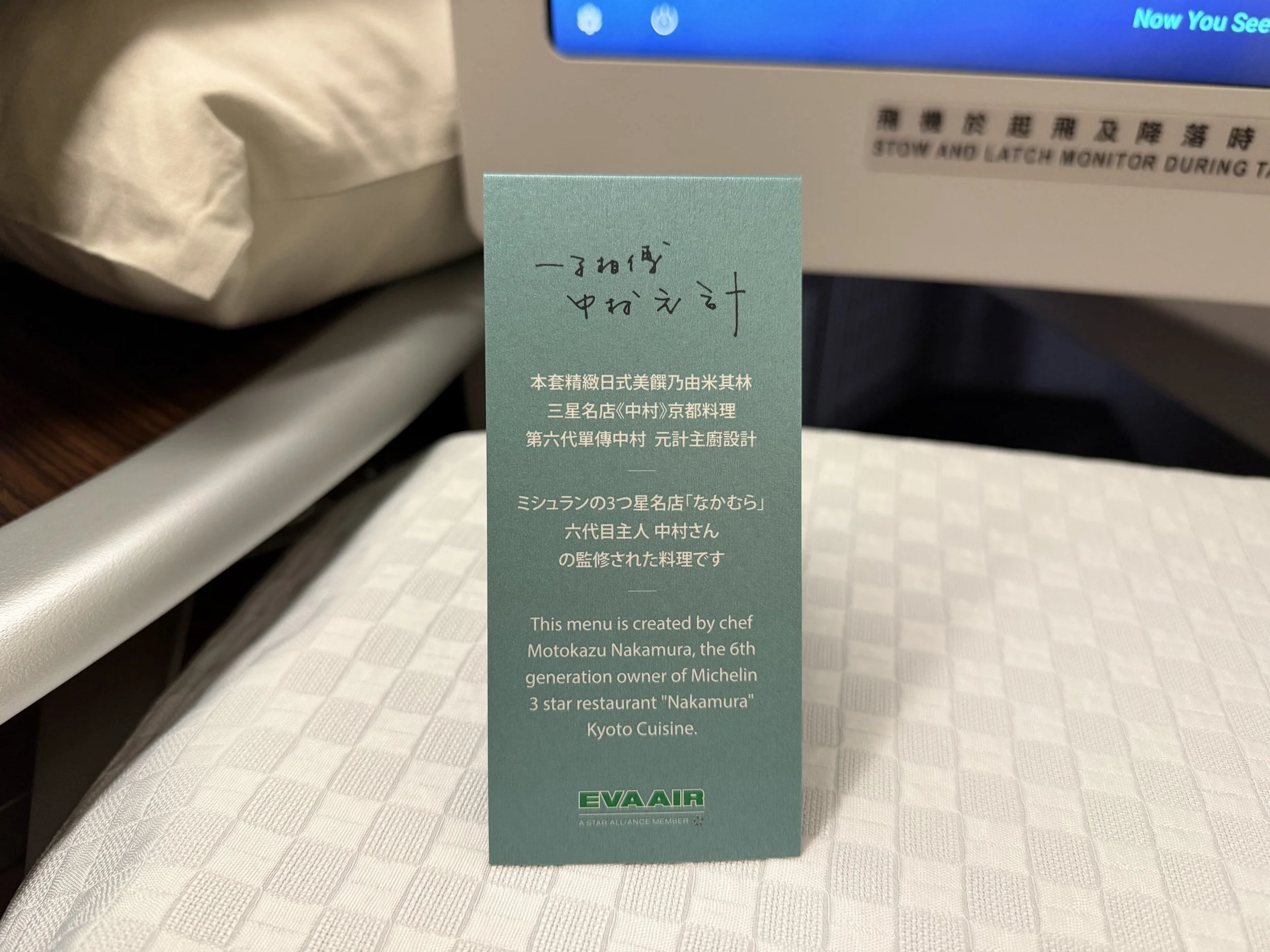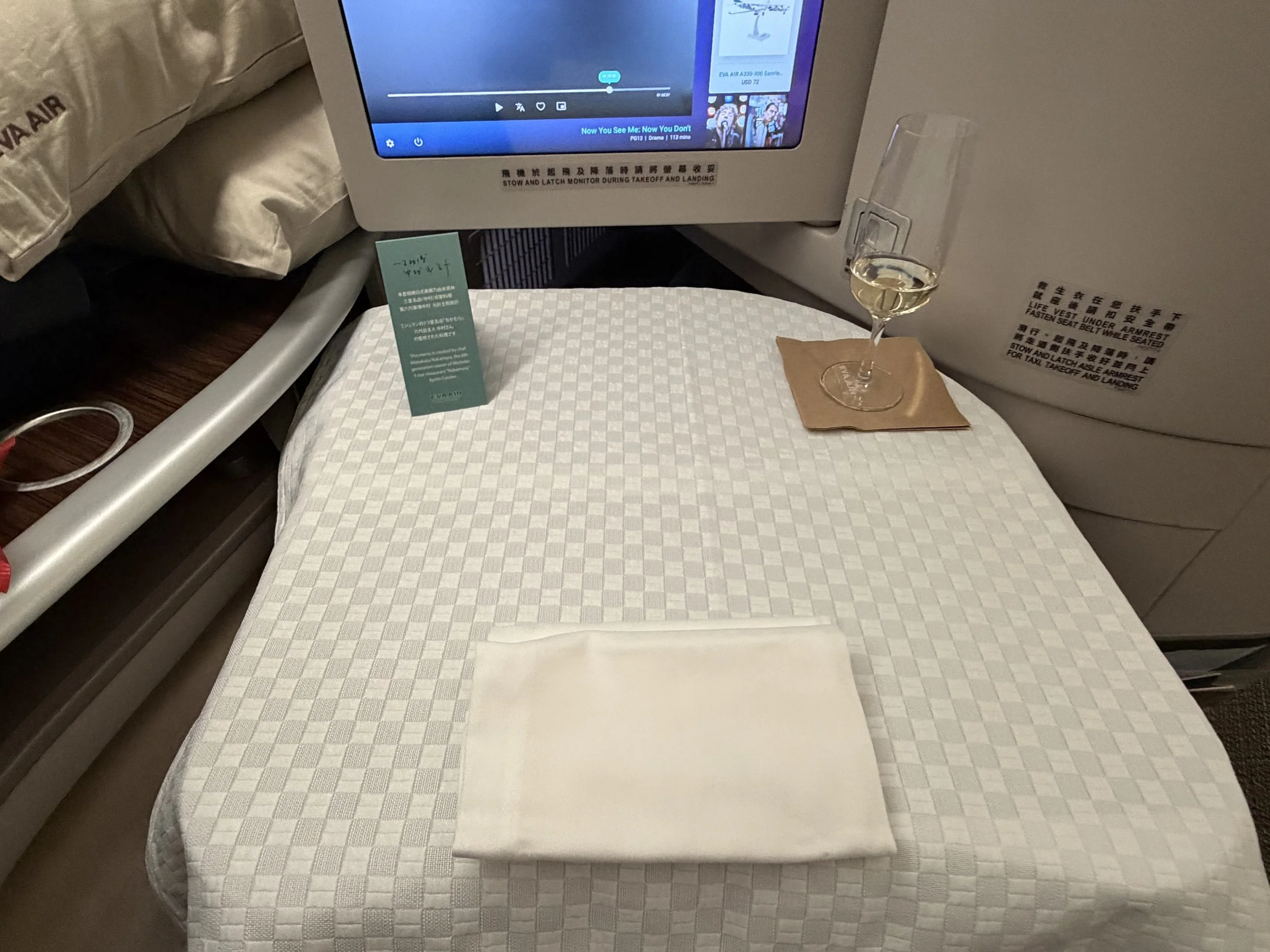 Printed menu and wine list were awaiting at the seat. EVA publishes digital menus within your reservation management system. I just want to point out how extensive the options were… Meanwhile the menu in American Airlines Flagship first class was “feeling like a plastic bag, drifting through the wind, wanting to start again”…
