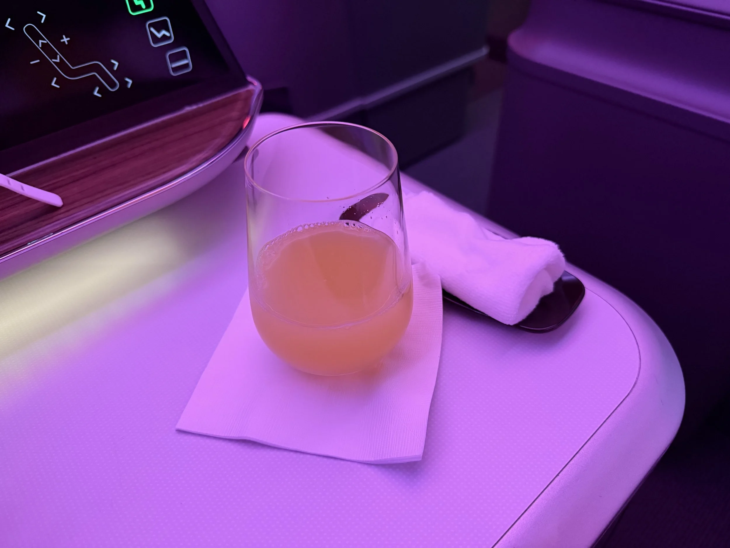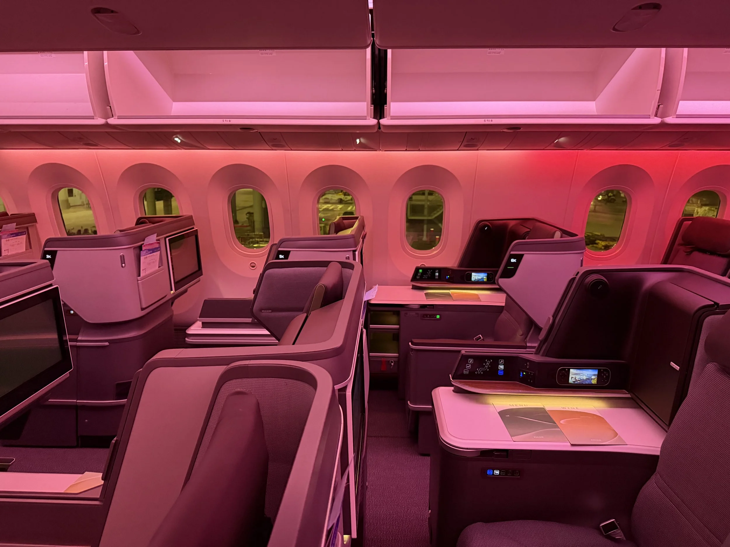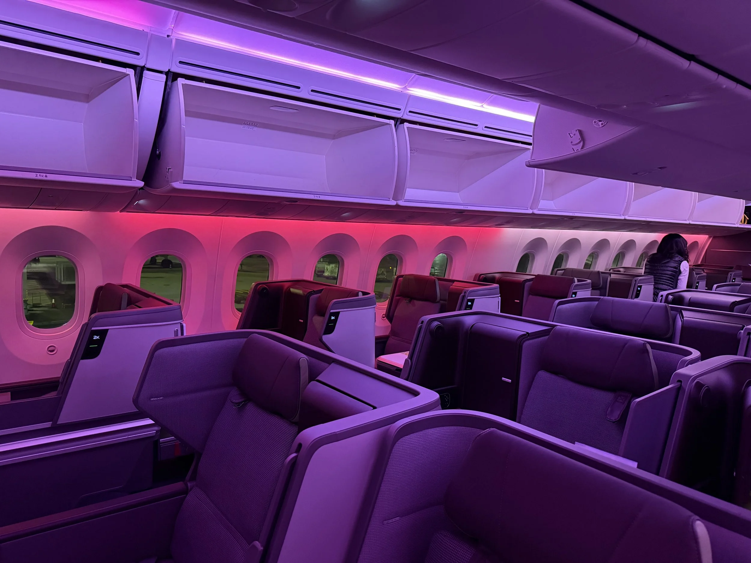 Upon boarding, I was greeted at the door and directed to take a left. Even with it being dark outside, the cabin felt sleek and fresh.