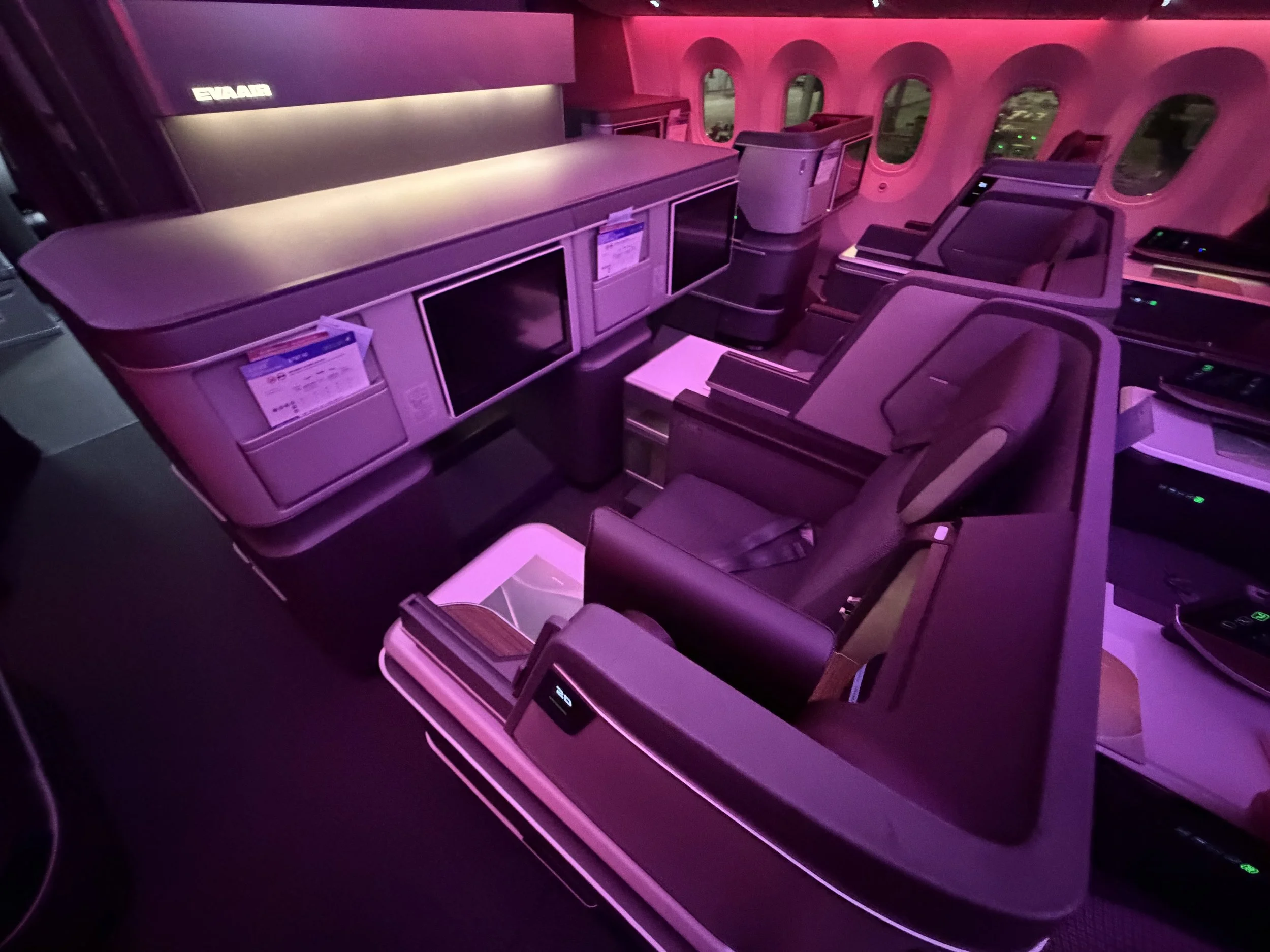 Historically, EVA Air was known more for its soft product. That’s because the backbone of its long haul fleet is comprised of B77Ws, which are configured with reverse herringbone seats. While they’re sufficient, EVA Air started taking deliveries of B787 Dreamliners. These new birds come with enhanced Thompson Vantage XL seats, and EVA Air’s finishes are possibly the nicest I’ve ever seen.