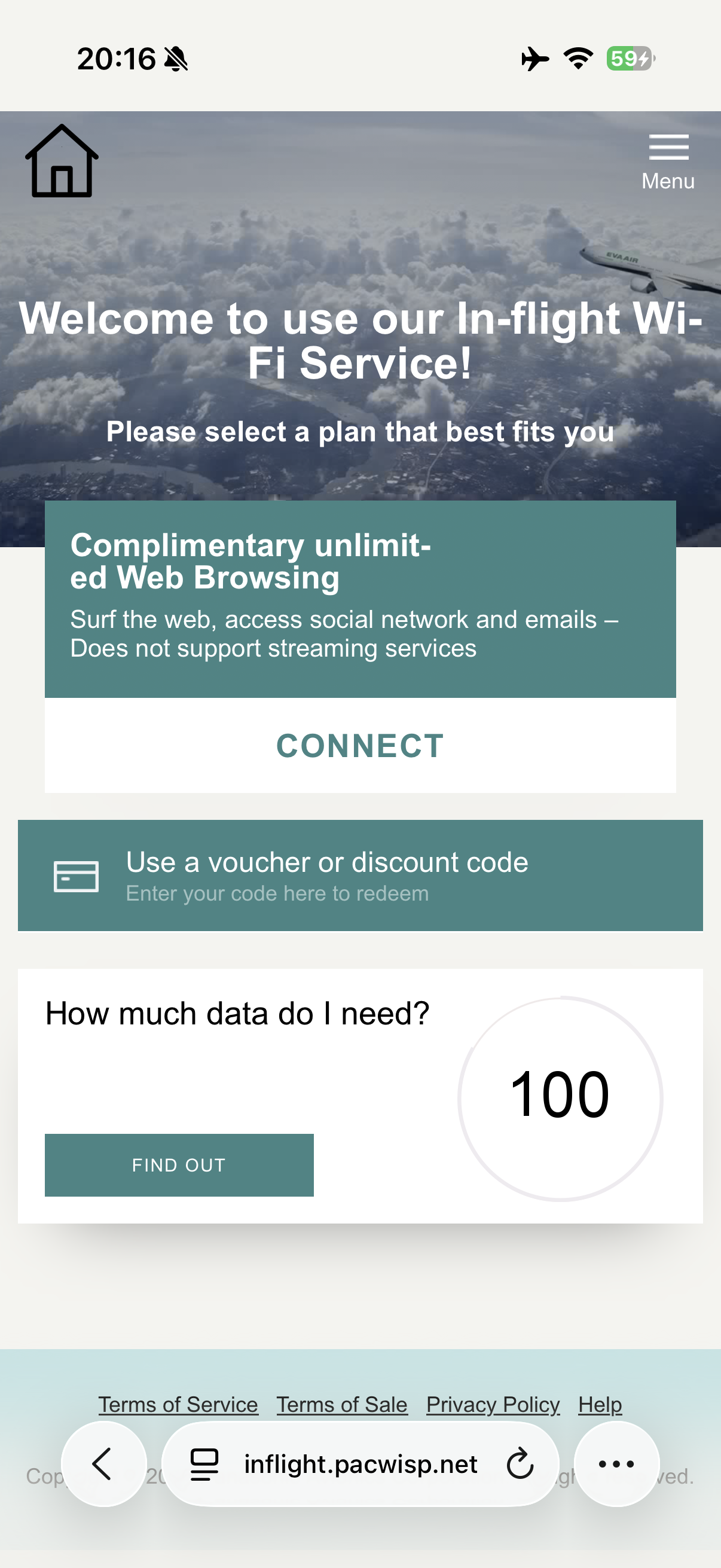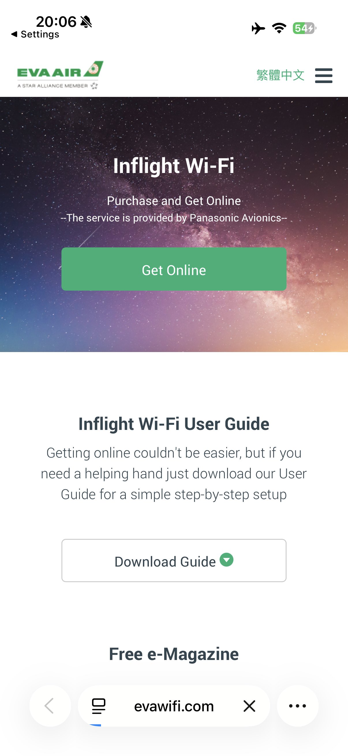 Once airborne, I connected to the inflight wifi, complimentary for business class passengers. To be balanced, I do think it’s rather disappointing that EVA installed Panasonic wifi on such a new plane…
