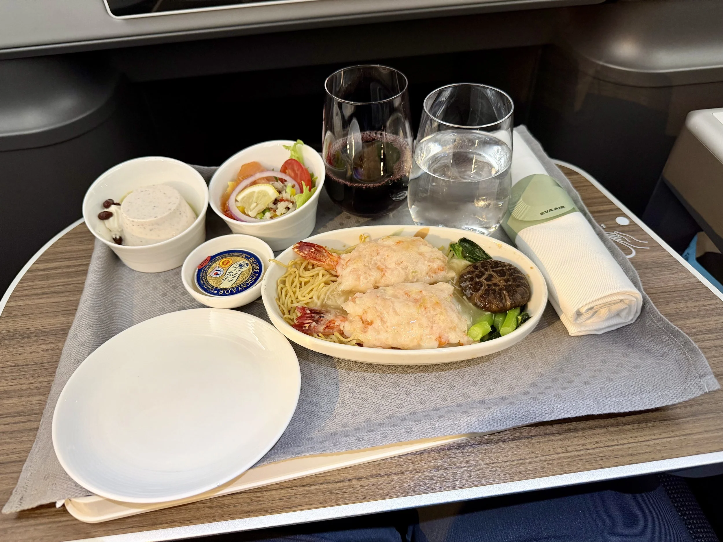 I washed everything down with a glass of Pessac-Léognan - call me a rebel I guess. The champagne on offer was the Laurent-Perrier brut, for those who are too lazy to flip through the menu. On my connecting flight to Paris, EVA served LPSG, which British Airways also serves, but only in first class.