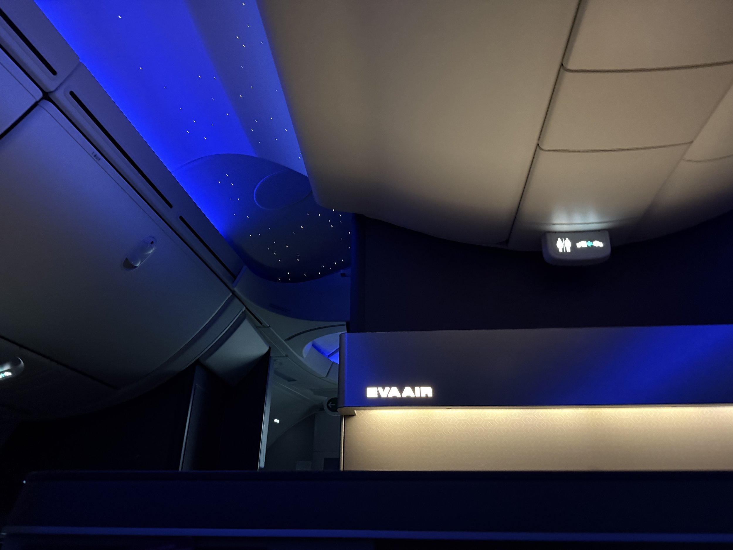 Prior to takeoff, stars appeared on the ceiling. Again, what a sleek and cool cabin. EVA really did a great job with the new cabin design.