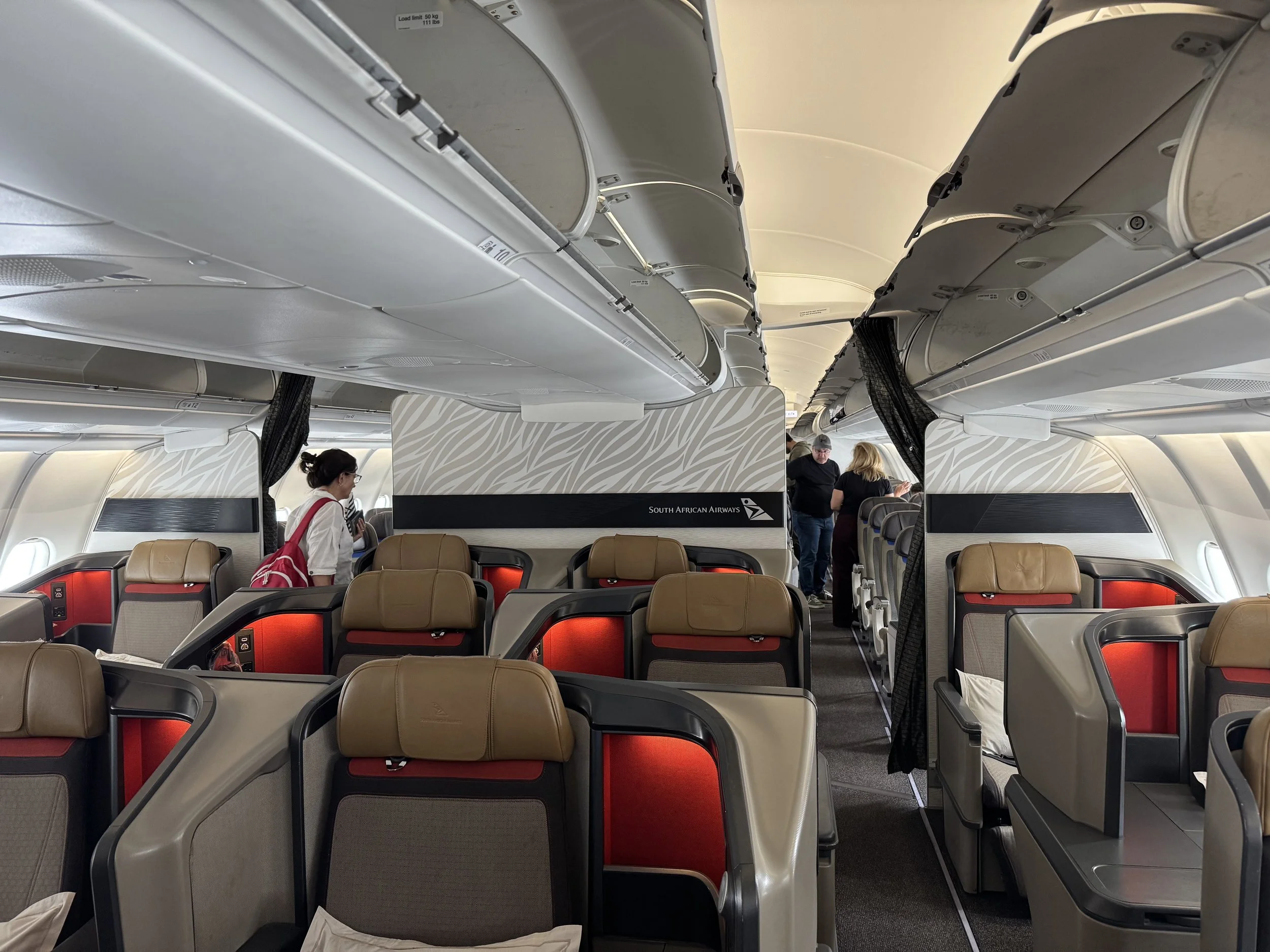 At first glance, the cabin looked quite nice. SAA went with the Thomspon VantageXL seats for the retrofit. This is a somewhat popular product found on airlines like Philippine Airlines, Qantas and SAS. I do find the earthy tones fitting for an African airline.
