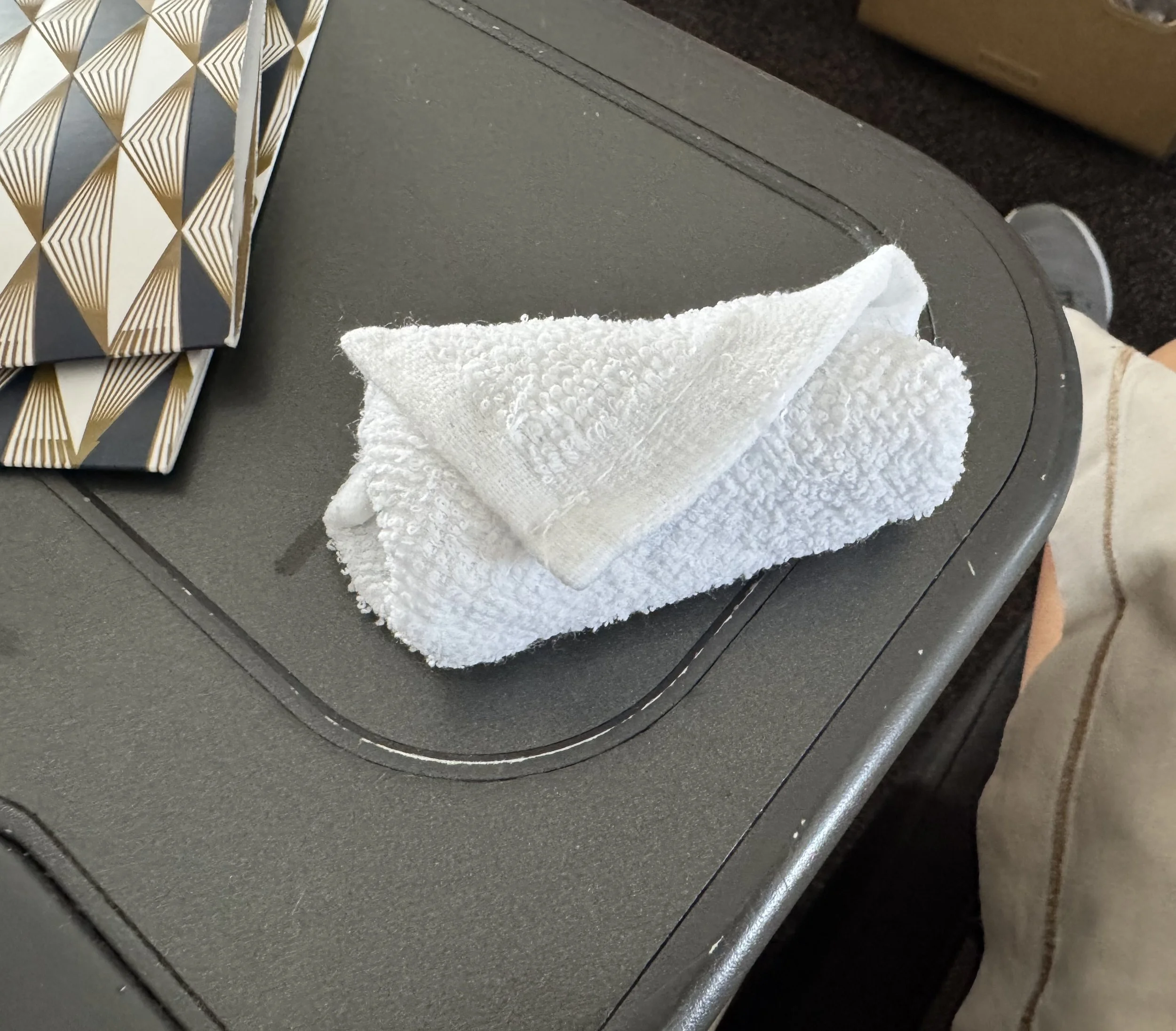 Service was very slow to get started. We got a hot towel once we leveled off, though it was an hour and some change until we received the next thing. It wasn’t a big deal on this westbound daytime flight, but I sure would hope for more expedient service in the other direction.