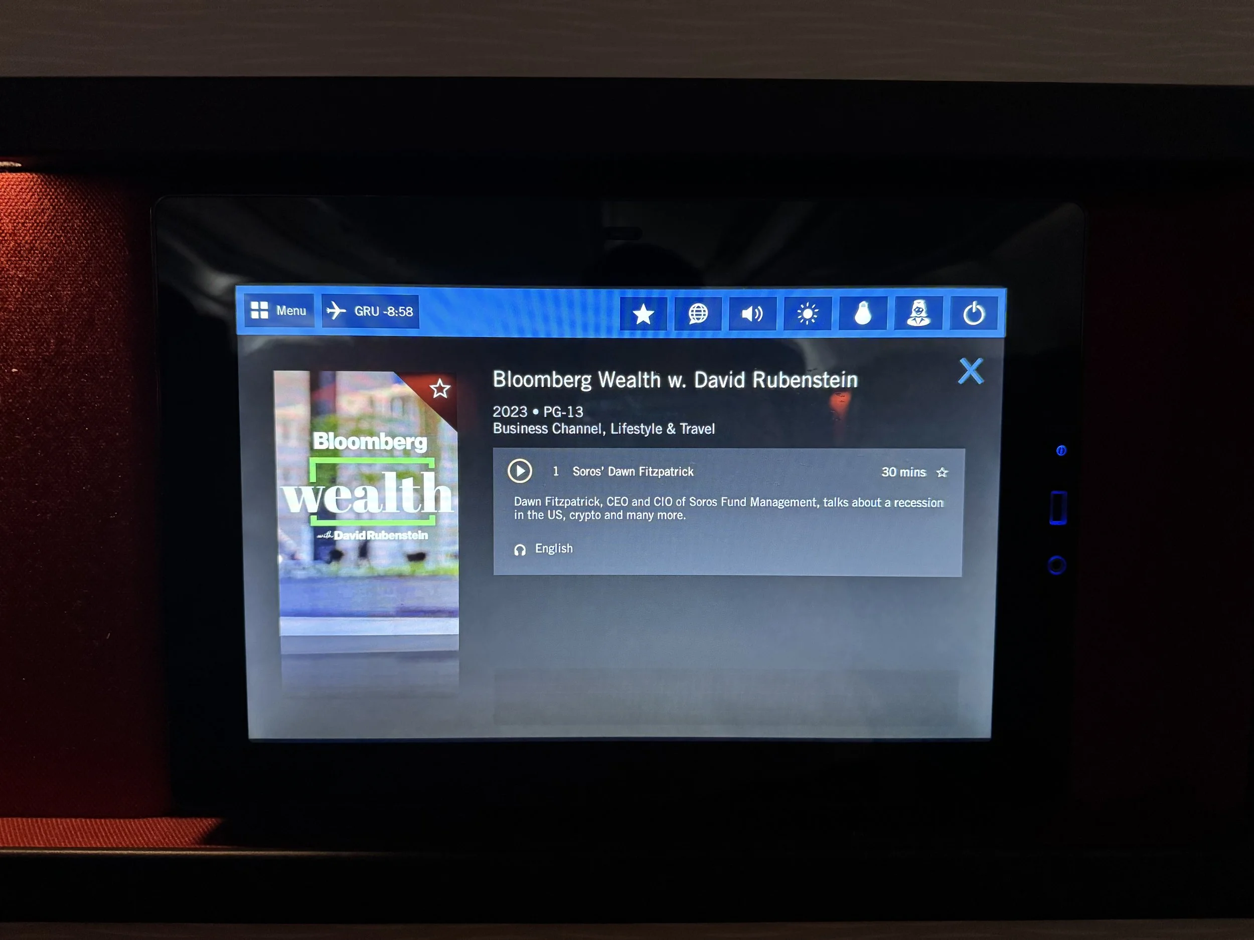 I browsed the onboard IFE system, which was only turned on after takeoff. There were 85 movies in total, along with some pretty random options like the David Rubenstein show on Bloomberg…