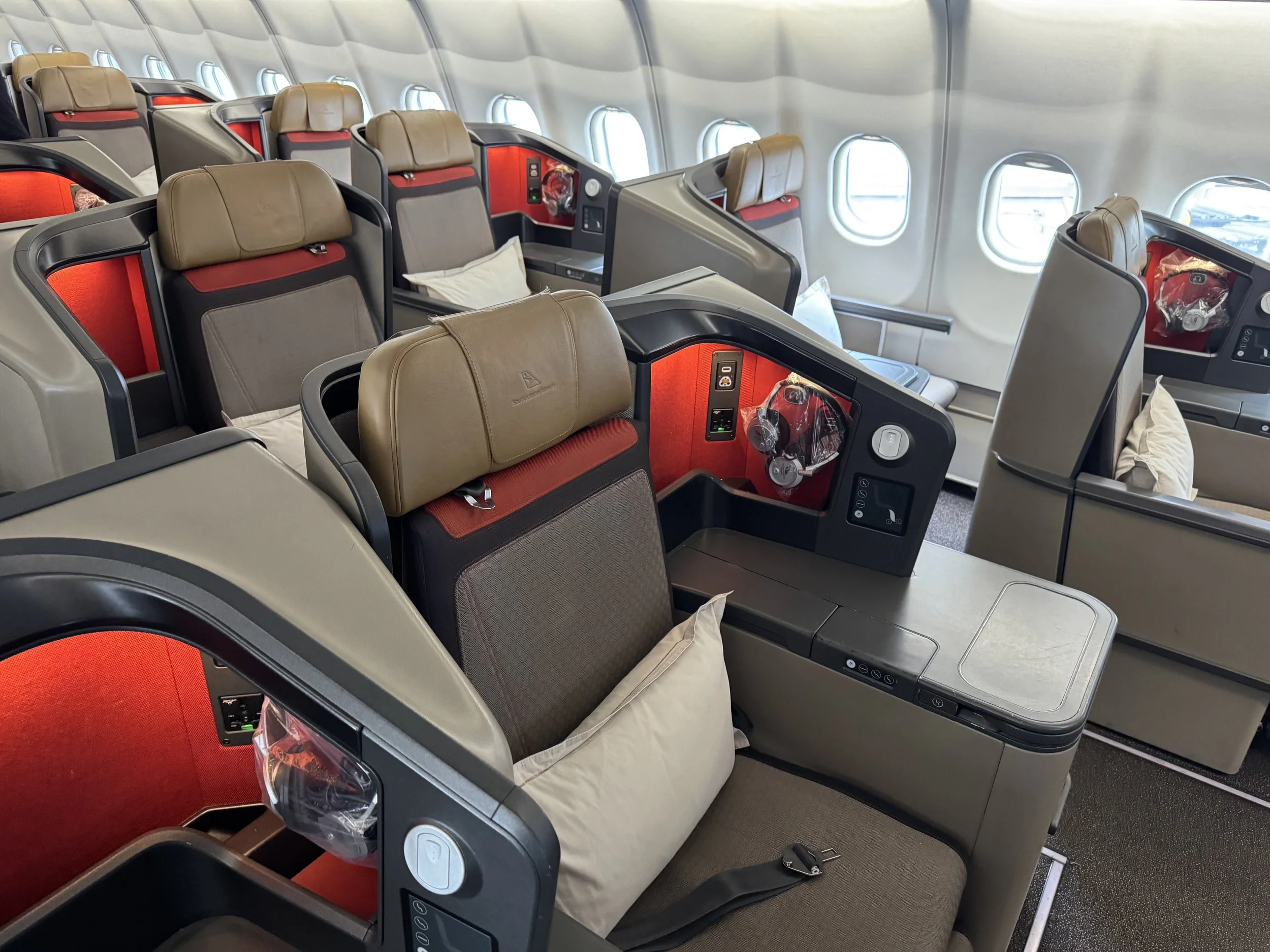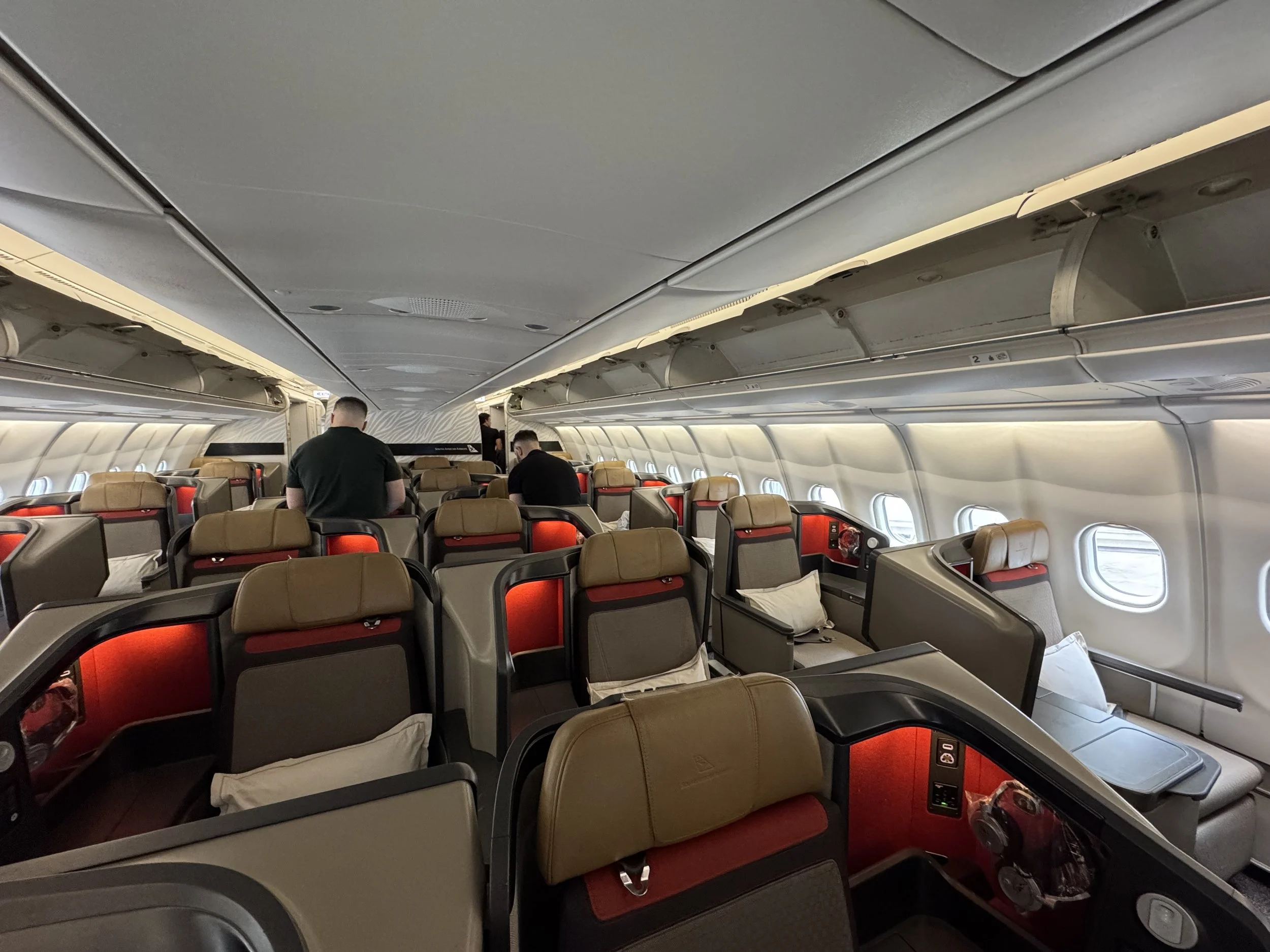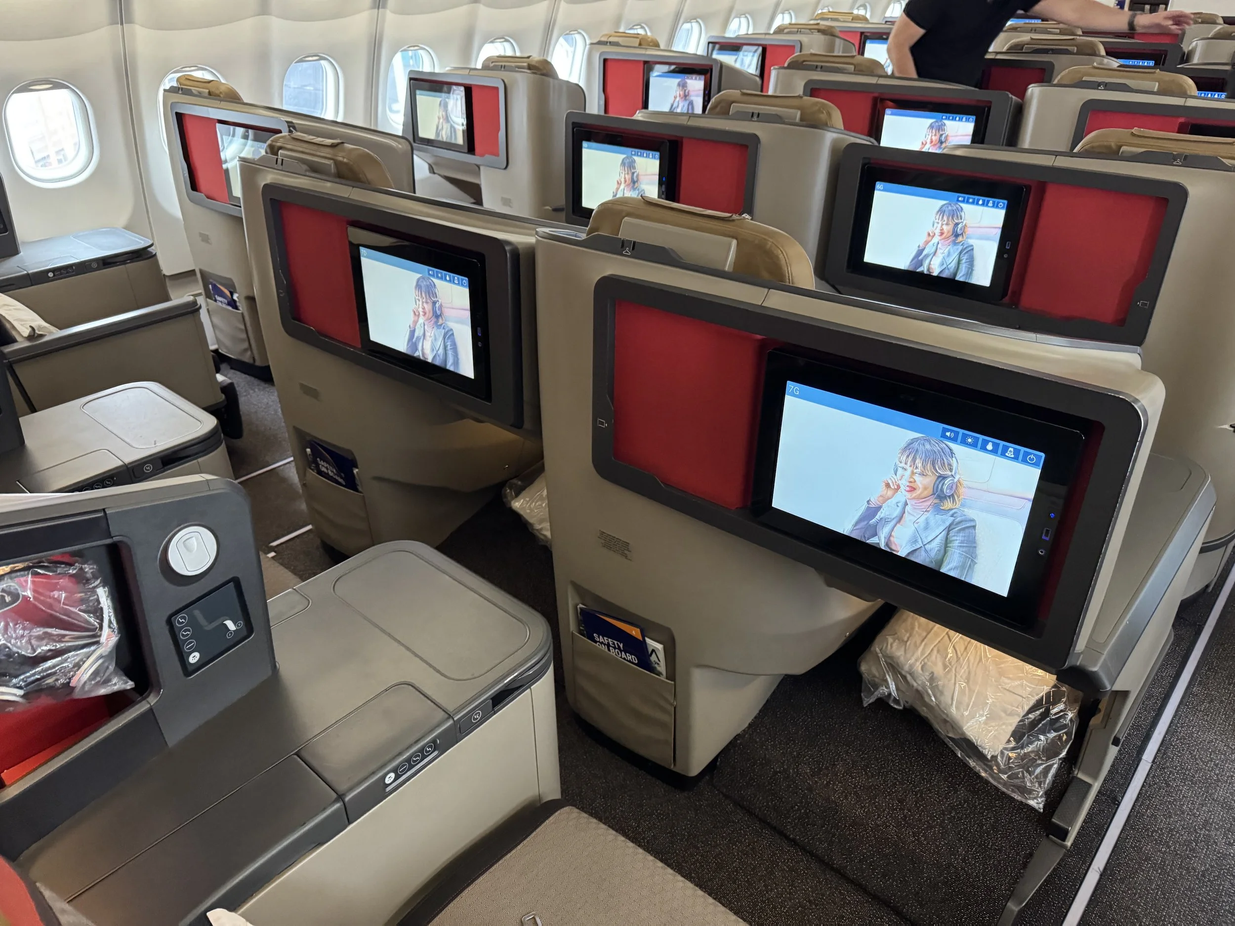 Upon boarding, I was greeted by the FAs at the door. Business class had a light load with maybe half of the seats taken. We were originally seated in the rear business cabin. Shortly after we sat down, the purser came by and promised (wink wink) us that we would get better service if we moved to the front cabin. It was a bulkhead for bulkhead swap situation, so we obliged.