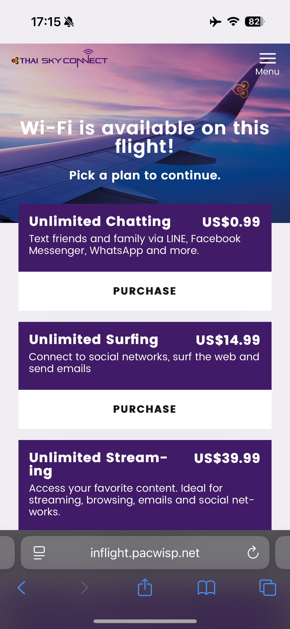While the B787 didn’t have WiFi, my return flight on the A350 did. Thai Airways offered one-hour of complimentary WiFi to business class passengers, which was mighty stingy.